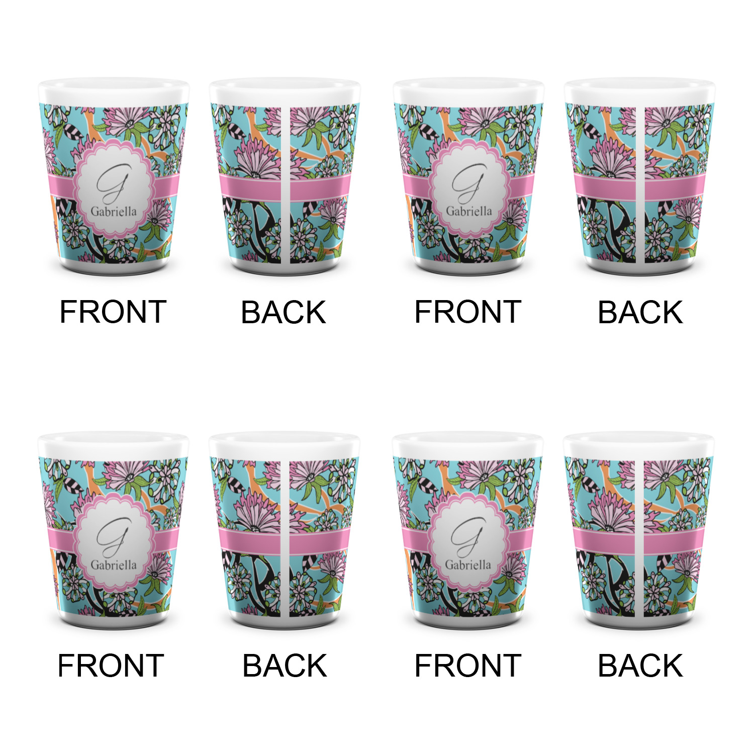 Made from ceramic these shot glasses are printed in full color with the design of your choice. These are a standard 1.5oz size and stand 2.25" tall. Available in a full white ceramic or a two-tone with a black color inside the shot glass. Buy a single or a set of 4, all of which can be designed separately to get you just what you want and need.