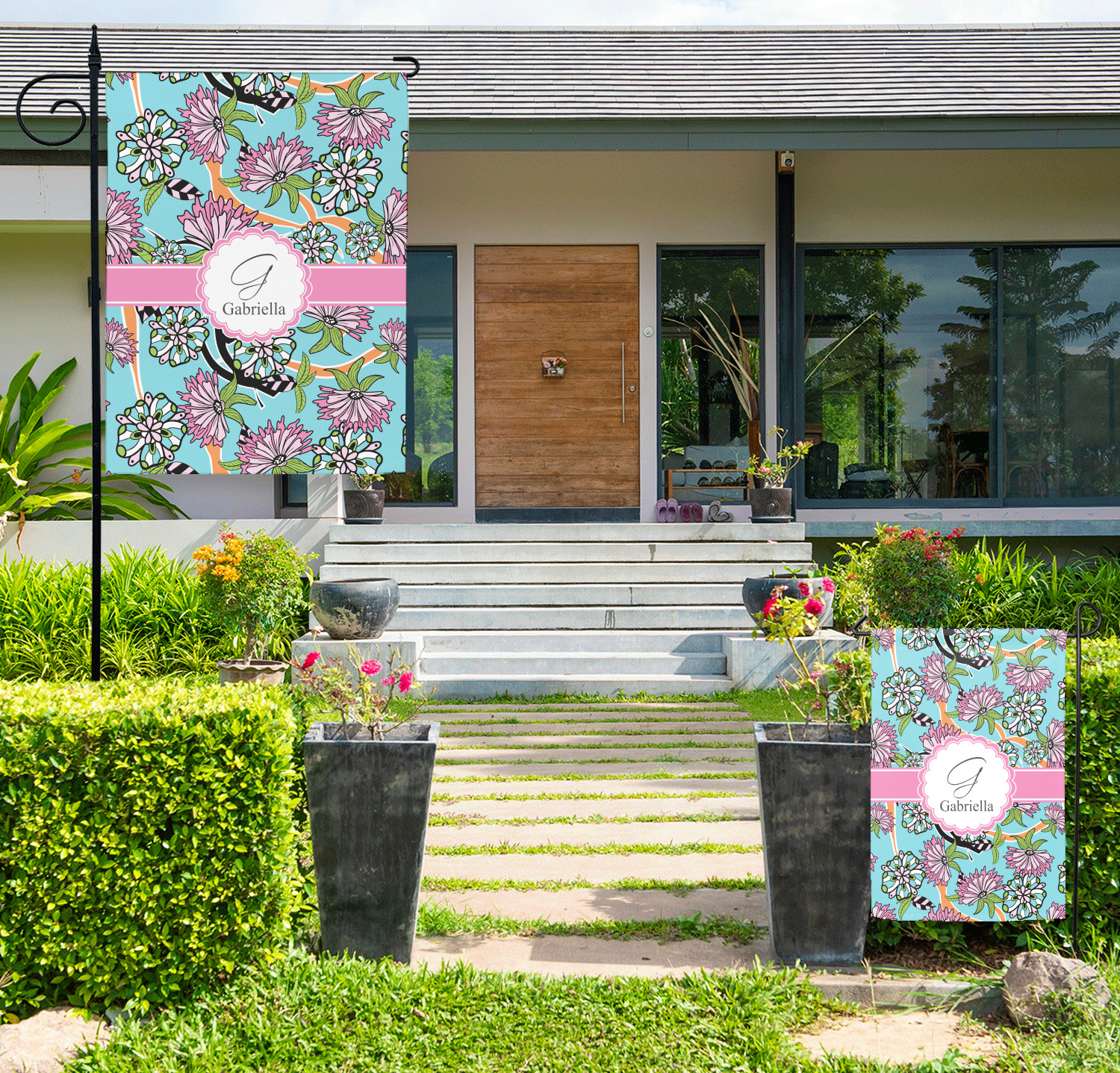 Decorate your front yard or your garden with one of our personalized garden flags! These garden flags will add a splash of color and personalization to any home's greenspace. Customize one with your name, favorite colors, and patterns, as a great addition to your home's exterior! Or, customize multiple seasonal flags and change them throughout the year!
