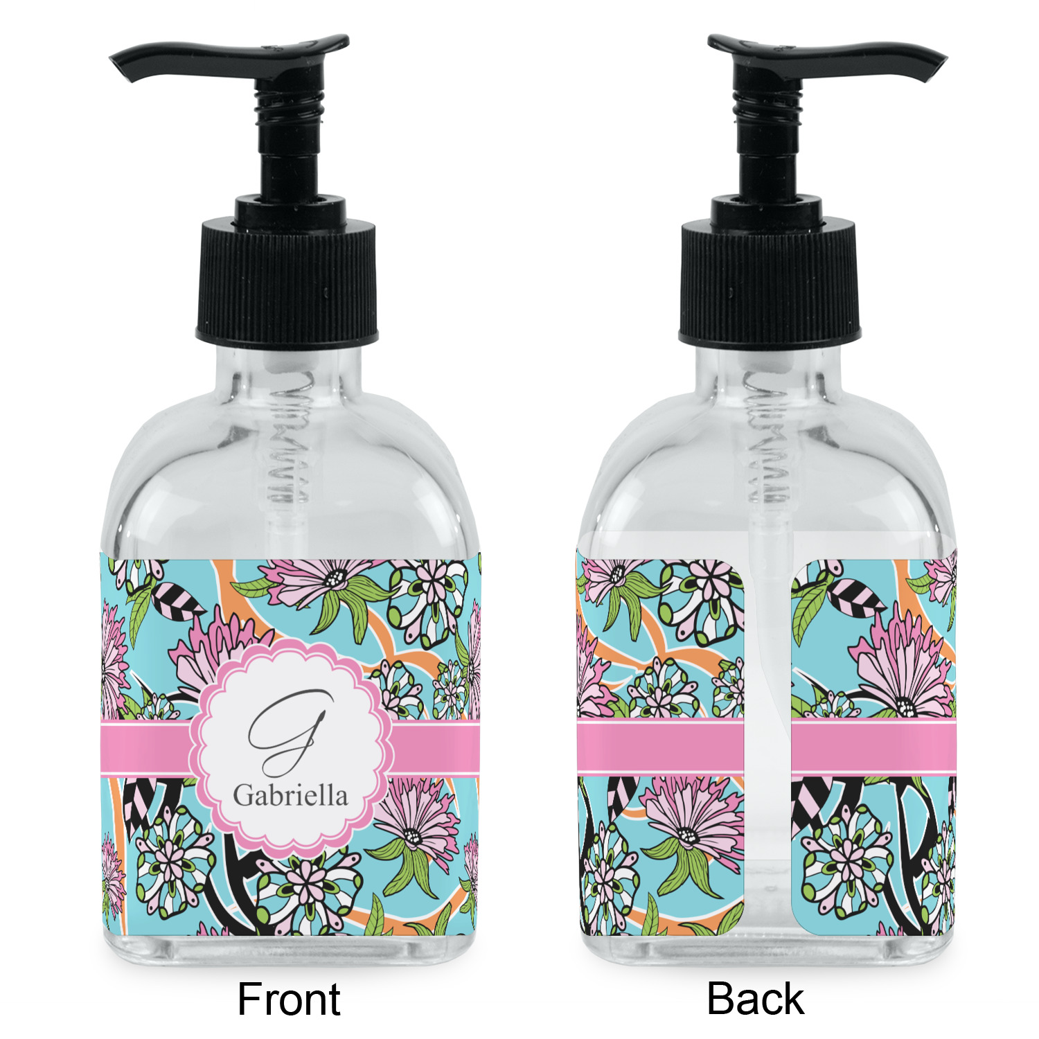 Crafted from a high-quality glass, these soap dispensers and lotion dispensers are durable and robust, while still looking elegant. They are sold with black pumps. Each soap dispenser pump measures at 6.5 by 2.25 inches. On these soap pumps, we display your customized design on a personalized vinyl adhesive on three sides. That way, you can judge how much liquid is in the bottles from the back.