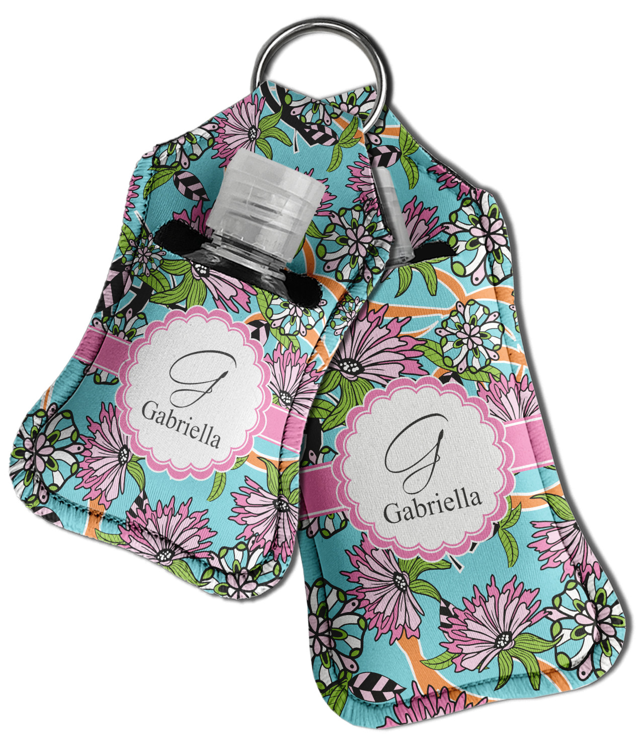 Each hand sanitizer holder comes with its own empty travel-sized, refillable hand sanitizer sure to fit snug in your customized sanitizer case! Our hand sanitizer cases are a durable, yet soft neoprene material sure to last any daily activities or travel agenda. Customize and personalize a hand sanitizer bottle holder with one of our two sizes - small (4.25" x 2.25") or large (5.5" x 2.5"). Each travel sanitizer holder comes with a keyring for attachment on bags, keys, or more!
