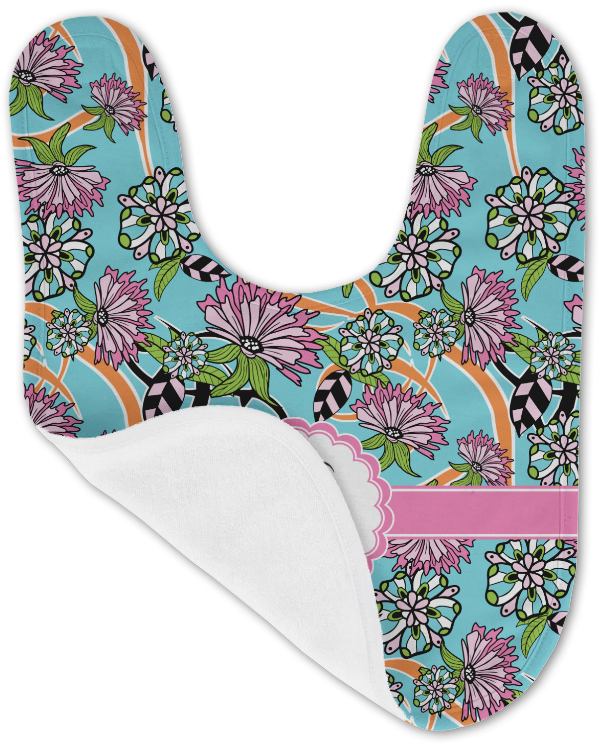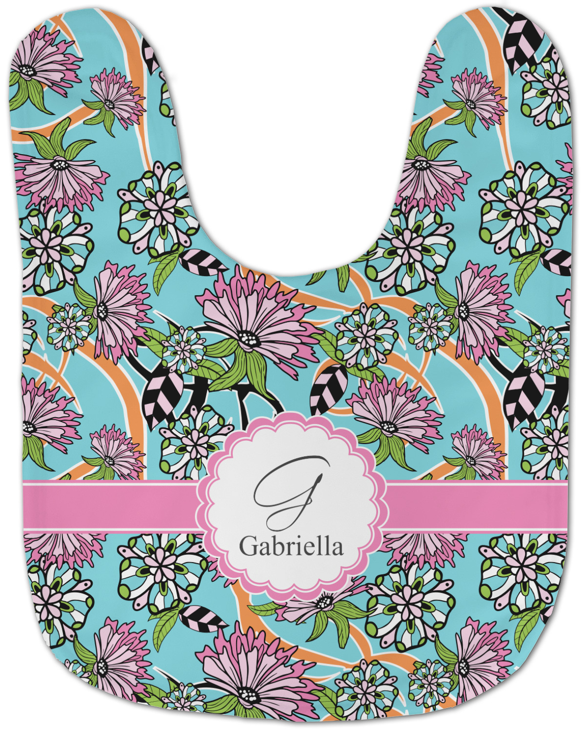 Made of soft polyester, each customizable bib hugs comfortably around the neck to catch every drip and drool. Each bib design is printed with baby-safe ink and finished with a secure stitch pattern and velcro clasp. We carry two customizable bib styles -Microfiber Velour and Jersey Knit.