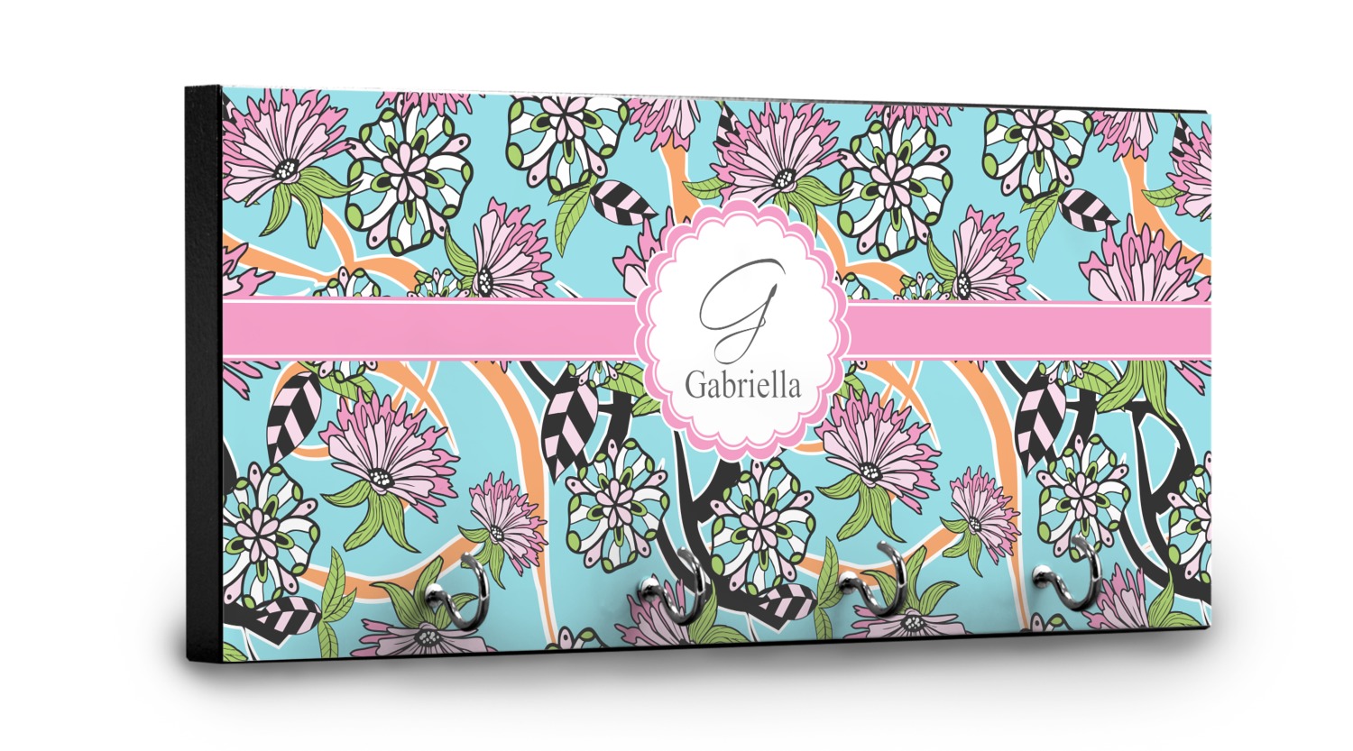 This 11" x 5" key hanger is made of sturdy wood and has four metal hooks lining the bottom. This is the perfect size for a family with several drivers. Not only can you hang keys on it though, but pet leashes and other small items. The board is black on the sides and back and is printed with the design of your choice on the front.