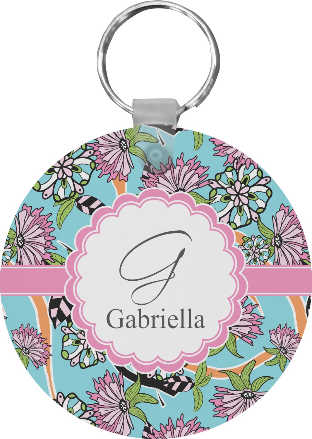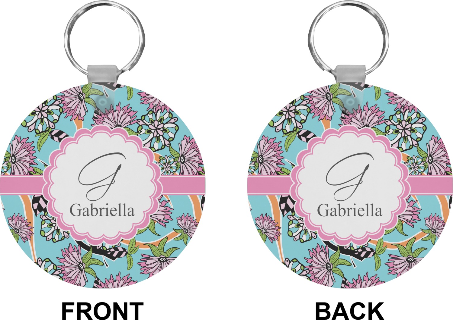 Our personalized keychains attach to the included metal, split key ring with a plastic, removable snap. Since a metal ring is included with your purchase, you have the liberty to keep your keys together on the ring, with or without your unique keychain. We offer this keychain in three different shapes: circle, heart, or diamond. We print your personalized design(s) on both sides of the key chain, and the surface has a glossy, reflective finish that only emphasizes your design. Each keychain is approximately 2.25 by 2.25 inches.