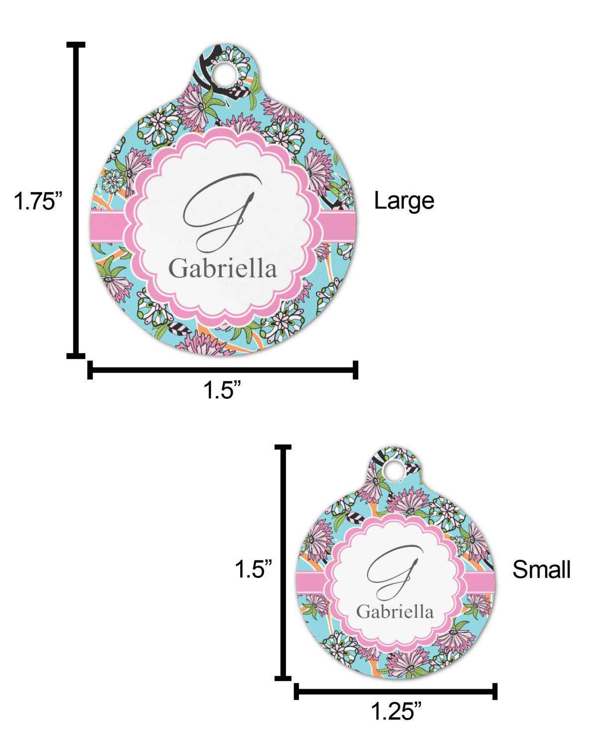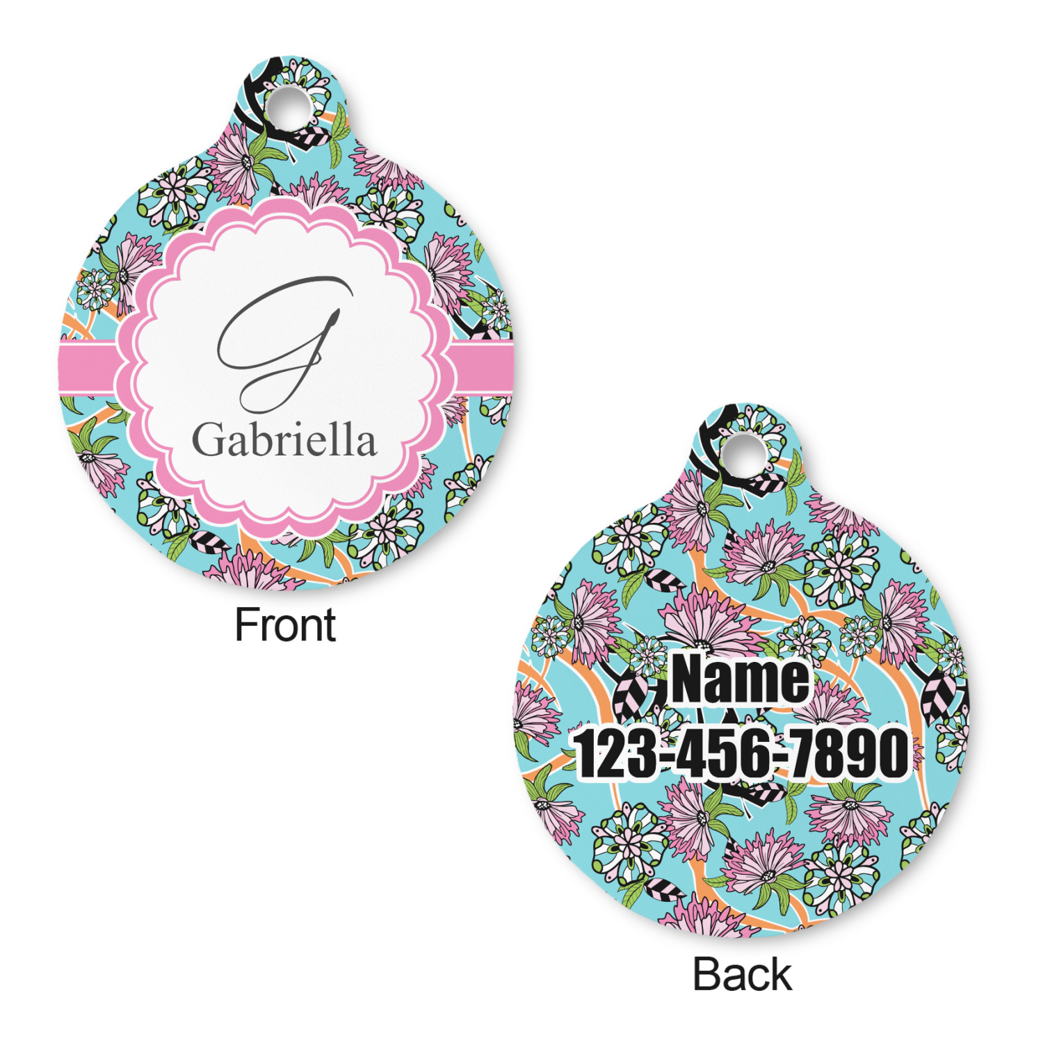 Go ahead; skip the monotony of plain pet ID tags with your very own, customized & personalized, round pet tag! This pet ID tag, fitting for both cats and dogs, will catch the eye of any onlooker (humans, canines, and felines, alike!) and accentuate your pet's individual personality.