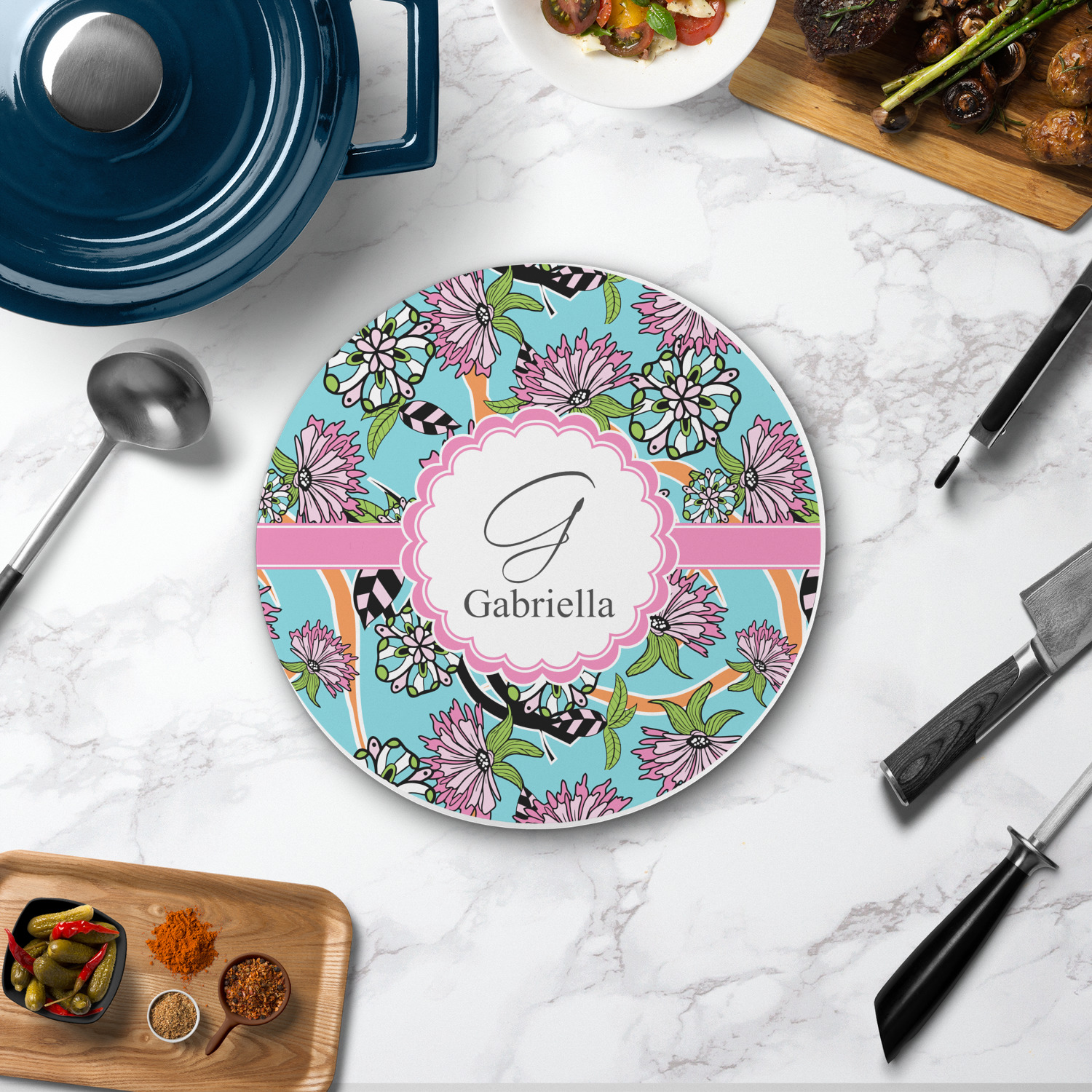 The round trivets can be customized with your own design, your own photo, or your own logo. You can add personalization, like a monogram, family name or initial to your uploaded design / art. You can also customize one of our designs and change the patterns, colors, personalization, fonts etc.