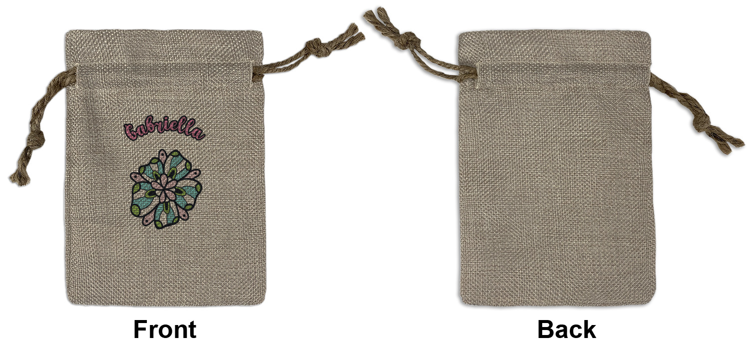 We sell our Burlap Gift Bags in 3 variant sized bags. Made with burlap polyester, each personalized bag can be secured with a twine drawstring pull. Your custom design is available to print on one side or both sides - completely up to you! The sizes of the bags measure approximately 4.5" x 6.5" for the smallest size, 6.5" x 8.0" for the medium size, and 6.5" x 13.5" for the large-sized bag.