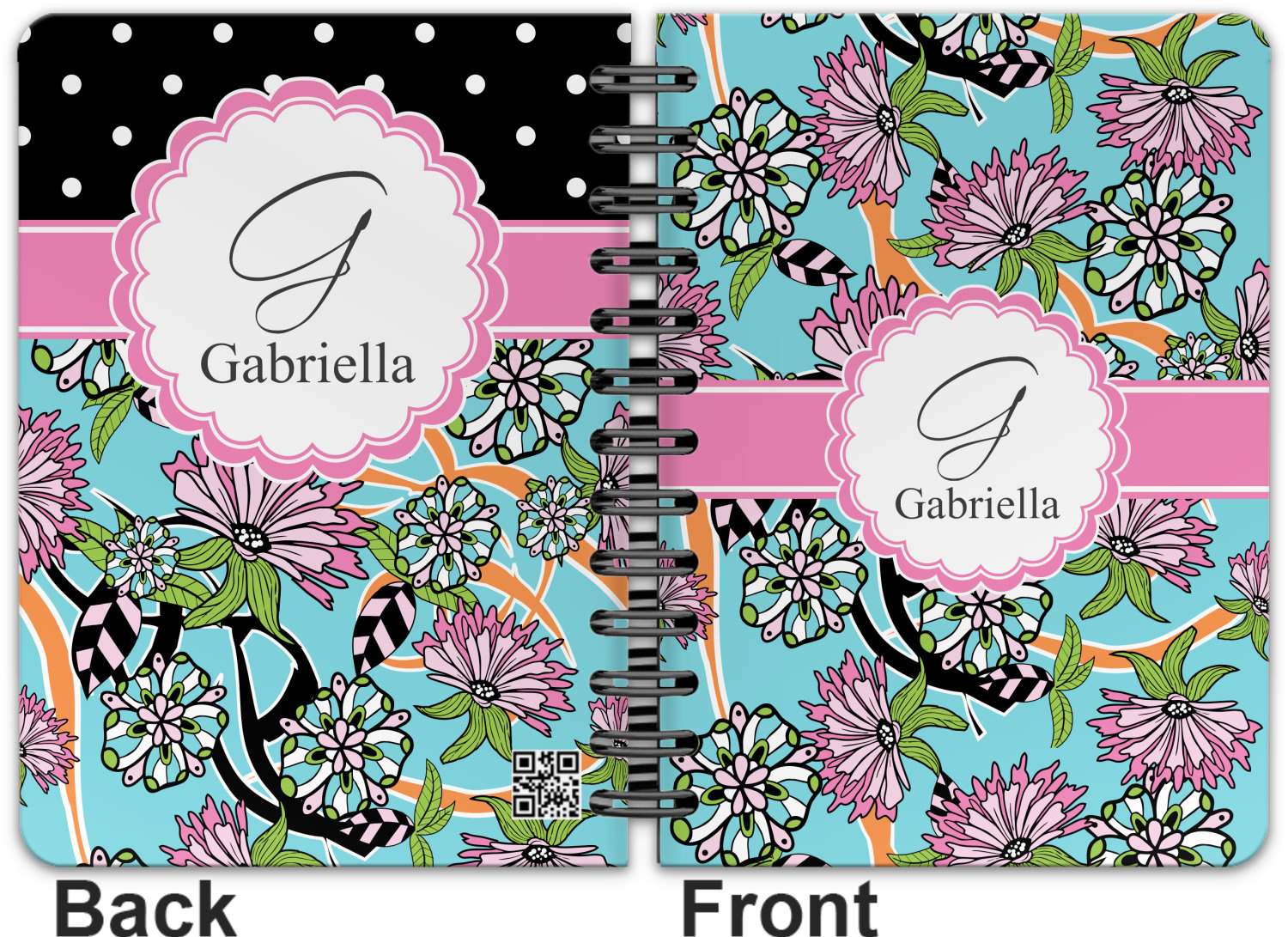 This spiral journal is available in two sizes. The first size is more suitable for a tote or purse and measures at 7" x 5". The second option is a bit larger, at 10" x 7", and is a better fit for a briefcase or backpack.