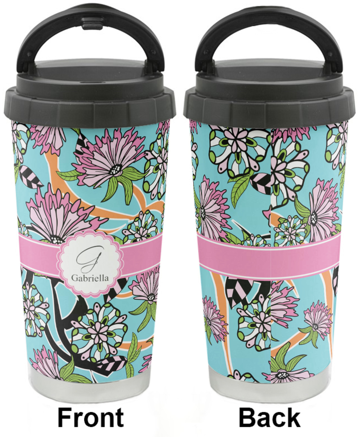 This sleek and tapered 16 oz stainless steel travel cup is a perfect fit in the hand. With the strip of visible stainless steel on the bottom, you'll be feeling classy!