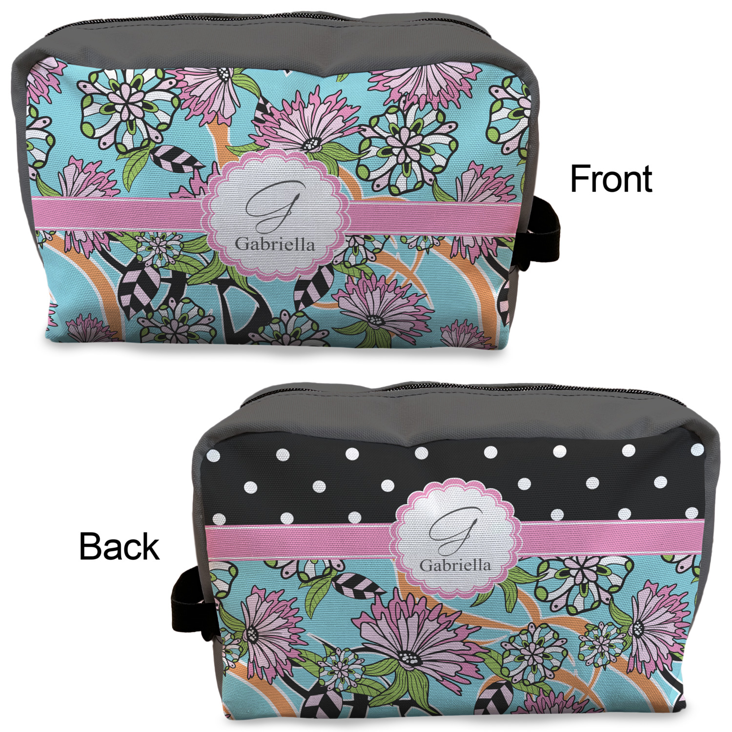 Designing a toiletry bag for yourself or as a gift can be a lot of fun. Our goal is for you to design a bag that reflects your personality and personal style. Our dopp kits are set up so you can design the front, the back and select a coordinating color for the zippered area.