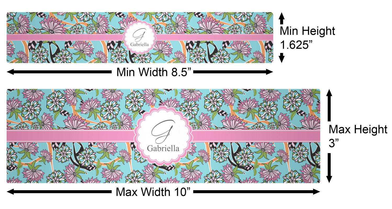 The flowers in this design are colored in two different shades of pink, lime green, and sky blue and are trimmed in black to make them pop out up against a sky blue background. The design has a classic ribbon in light pink trimmed in white. The decorative scalloped label is in white and trimmed in the light pink and white. Add an initial and a name for that personal touch to pull the entire design together.