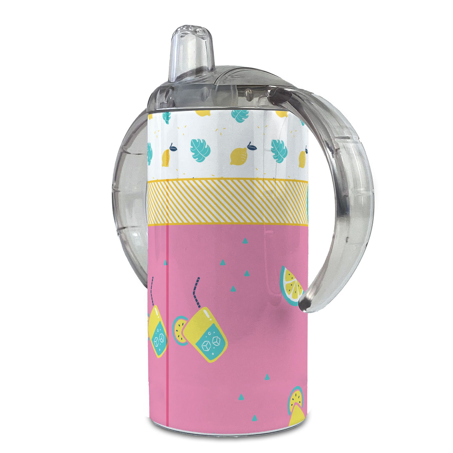 Our toddler cups are free of BPA, and have a twist-open lid so that you can easily fill and clean these cups for your young ones. Each cup also comes with a sippy nozzle to reduce spills. We offer these custom sippy cups in two different sizes; we have a baby sippy cup that holds 5 ounces, and a toddler sippy cup that holds 10 ounces. Your customization is printed on a premium glossy media insert that is placed within these toddler drinking cups.