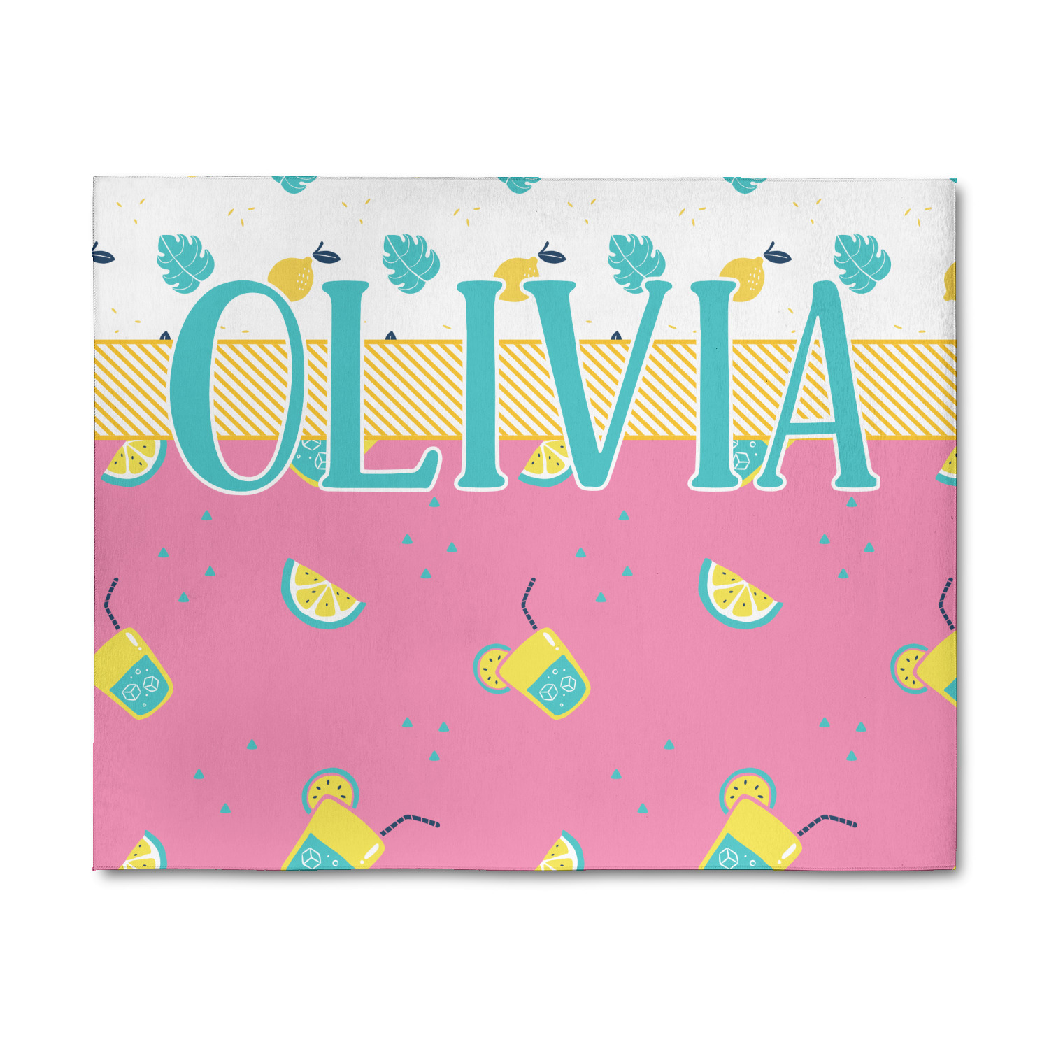 Summer Lemonade is a bold pink with pops of yellow cups of lemonade and green shapes. This is the perfect design for beach and pool gear! Get some fun flip-flops or put it on a beach towel!