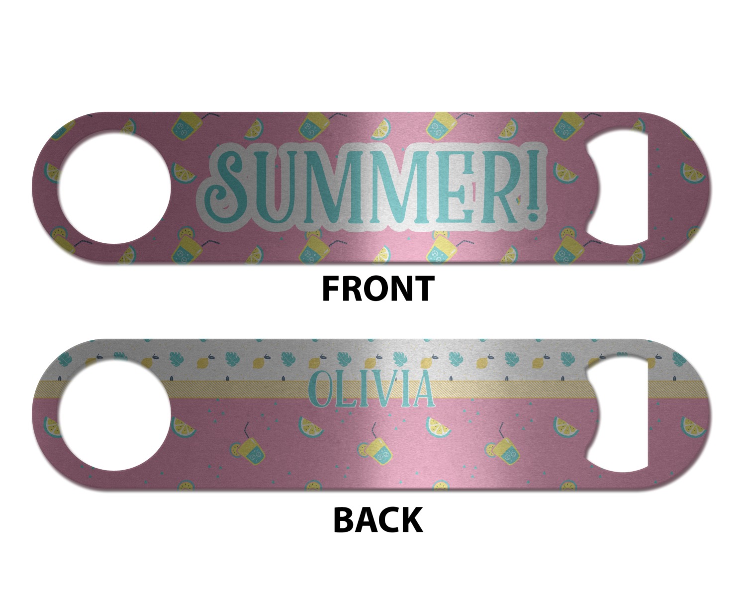 Stop struggling with the caps or your bottled beverages by purchasing one of our personalized bottle openers! These wrench-like custom bar blades are built to last. Customize one for your home's bar, or as a practical gift for a loved one!