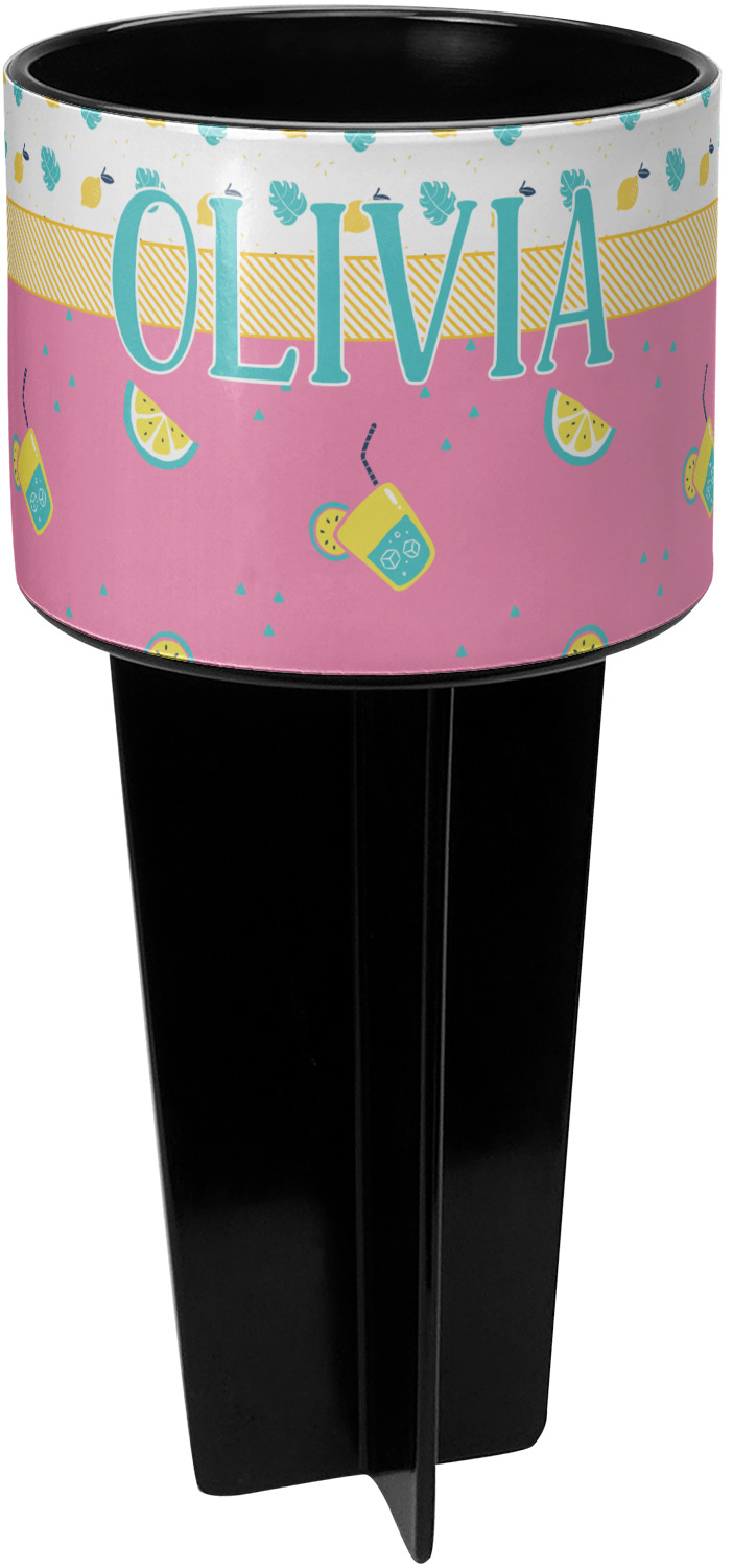 This cup holder has a large stake at its bottom that anchors it to the sand or ground below, while the cup holder rests above the stake. The entire drink holder is made of durable plastic and displays your customization around the cup holder portion. We sell these personalized beach spikers in two different colors: black and white.