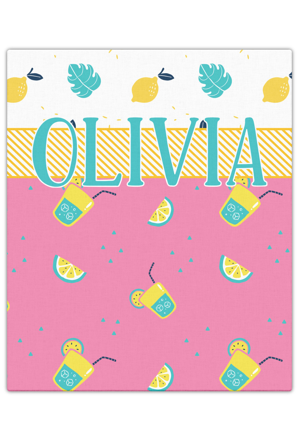 Summer Lemonade is a bold pink with pops of yellow cups of lemonade and green shapes. This is the perfect design for beach and pool gear! Get some fun flip-flops or put it on a beach towel!