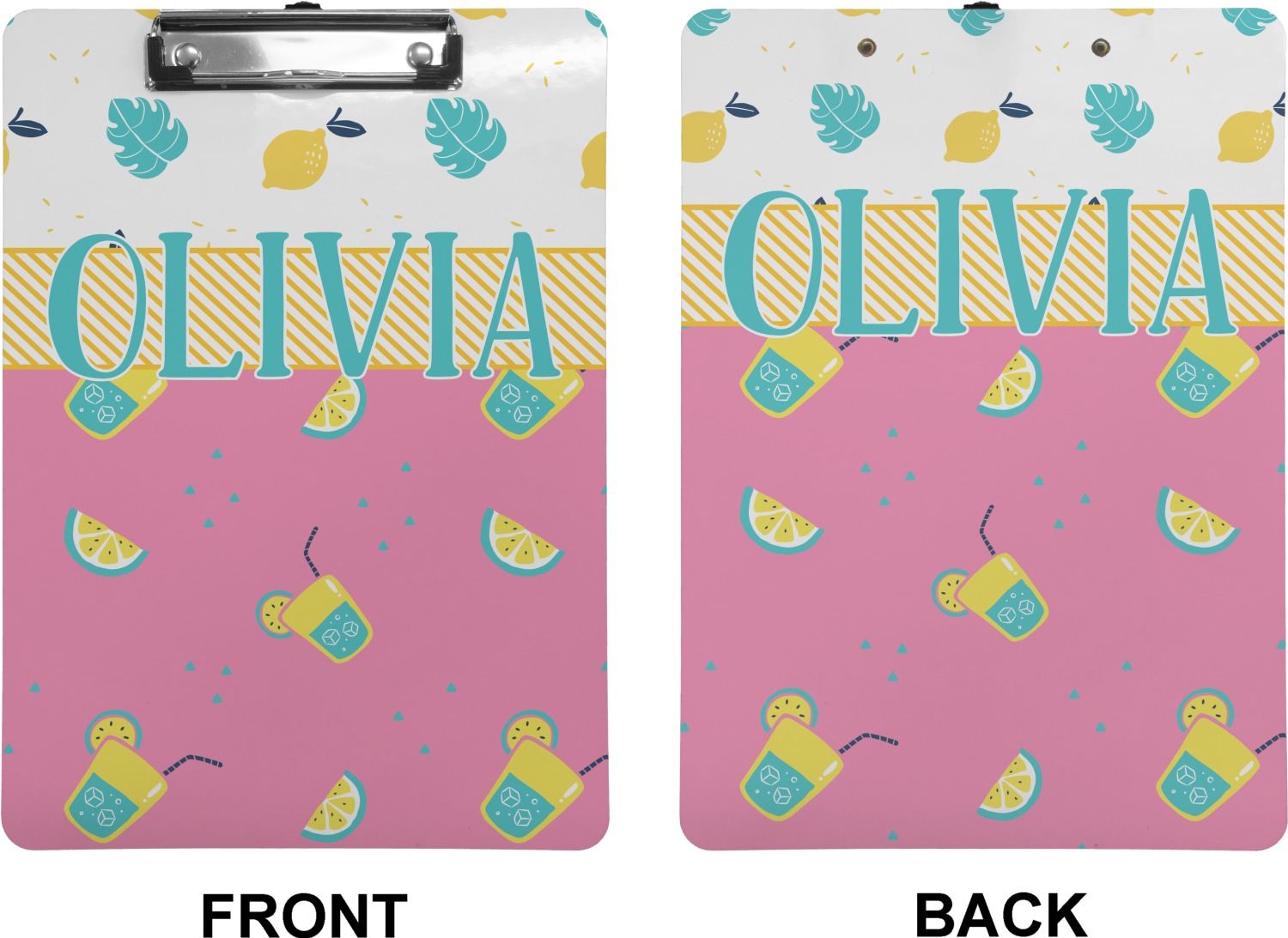 These custom clipboards are made from a strong hardboard and are coated with a glossy finish that accentuates the colors of your design. Alongside a retractable hook at its top, these decorative clipboards also feature sturdy clips to secure several sheets of paper. We sell these clipboards in two separate sizes. Our letter size measures at 12.5" L x 9" W, while our legal clipboard is approximately 15.5" L x 9" W. On both models, your personalization is printed on both sides of this clipboard and can be customized individually.