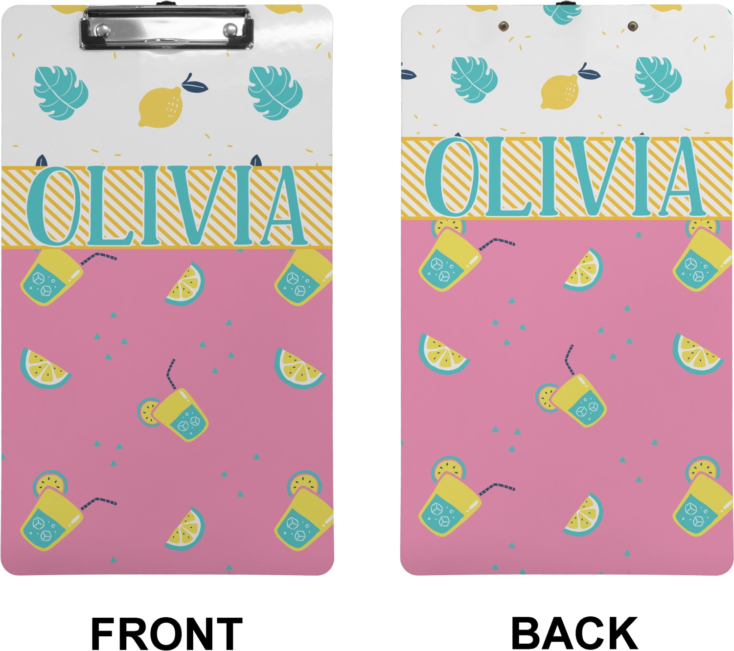 These custom clipboards are made from a strong hardboard and are coated with a glossy finish that accentuates the colors of your design. Alongside a retractable hook at its top, these decorative clipboards also feature sturdy clips to secure several sheets of paper. We sell these clipboards in two separate sizes. Our letter size measures at 12.5" L x 9" W, while our legal clipboard is approximately 15.5" L x 9" W. On both models, your personalization is printed on both sides of this clipboard and can be customized individually.