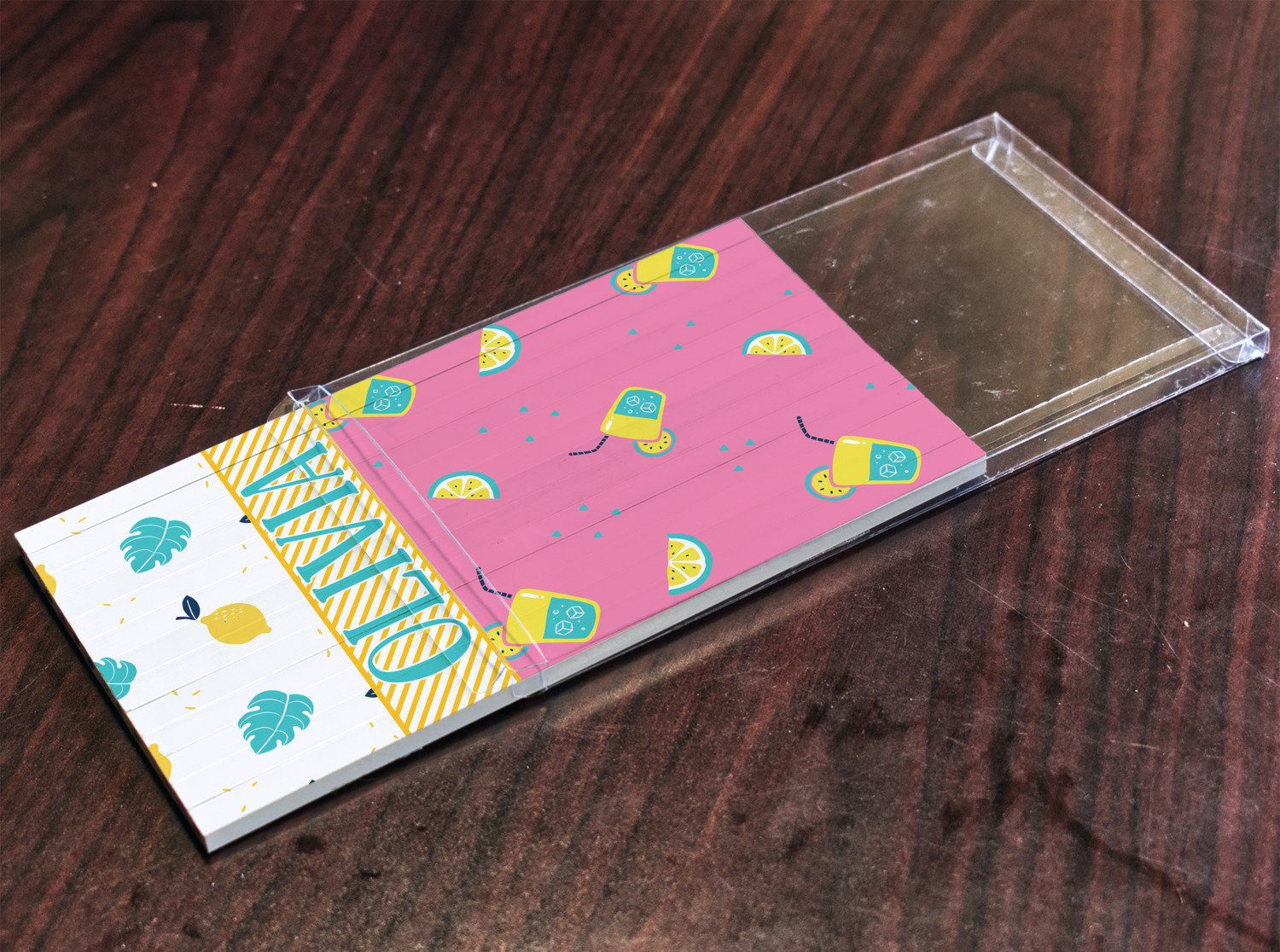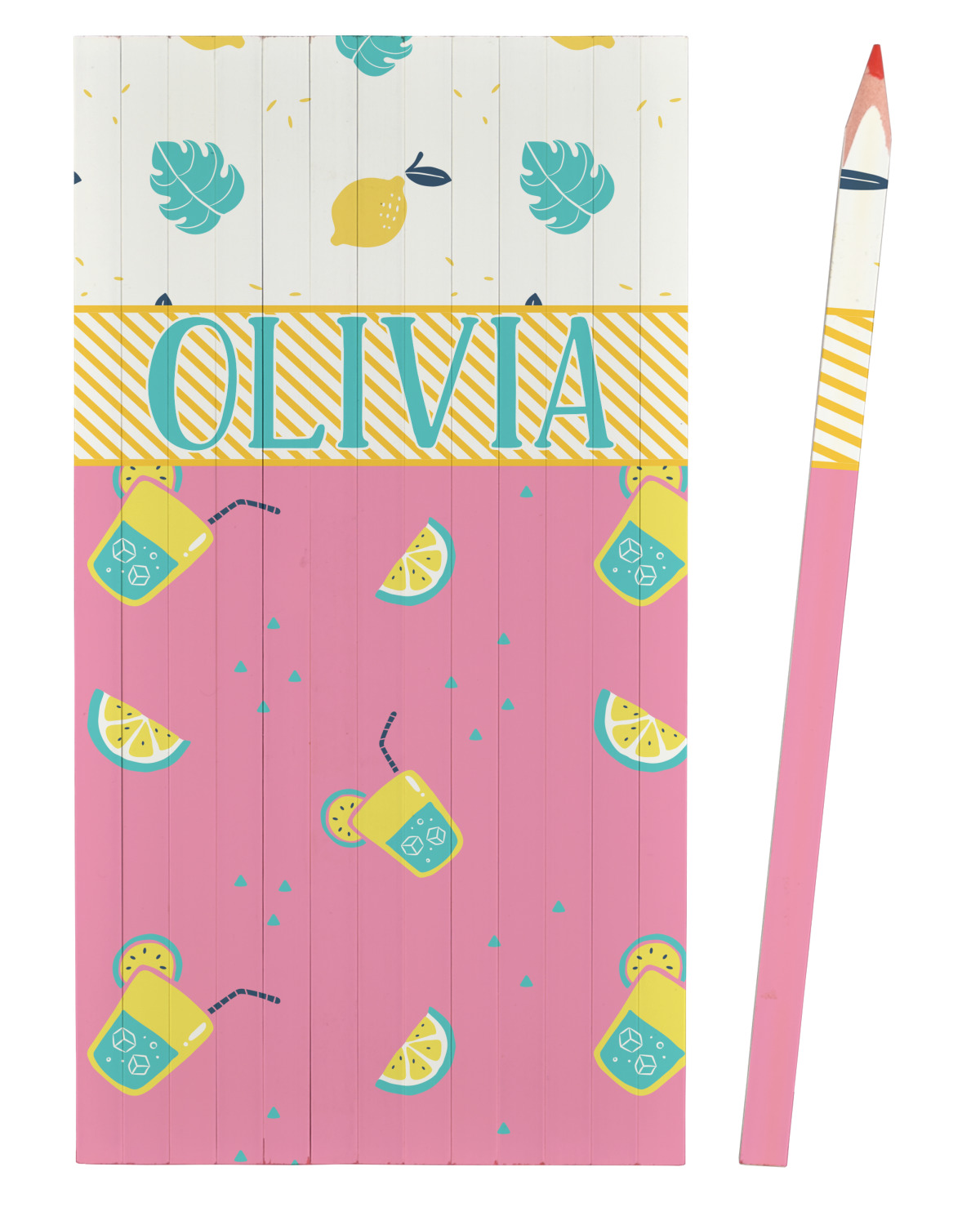 Summer Lemonade is a bold pink with pops of yellow cups of lemonade and green shapes. This is the perfect design for beach and pool gear! Get some fun flip-flops or put it on a beach towel!