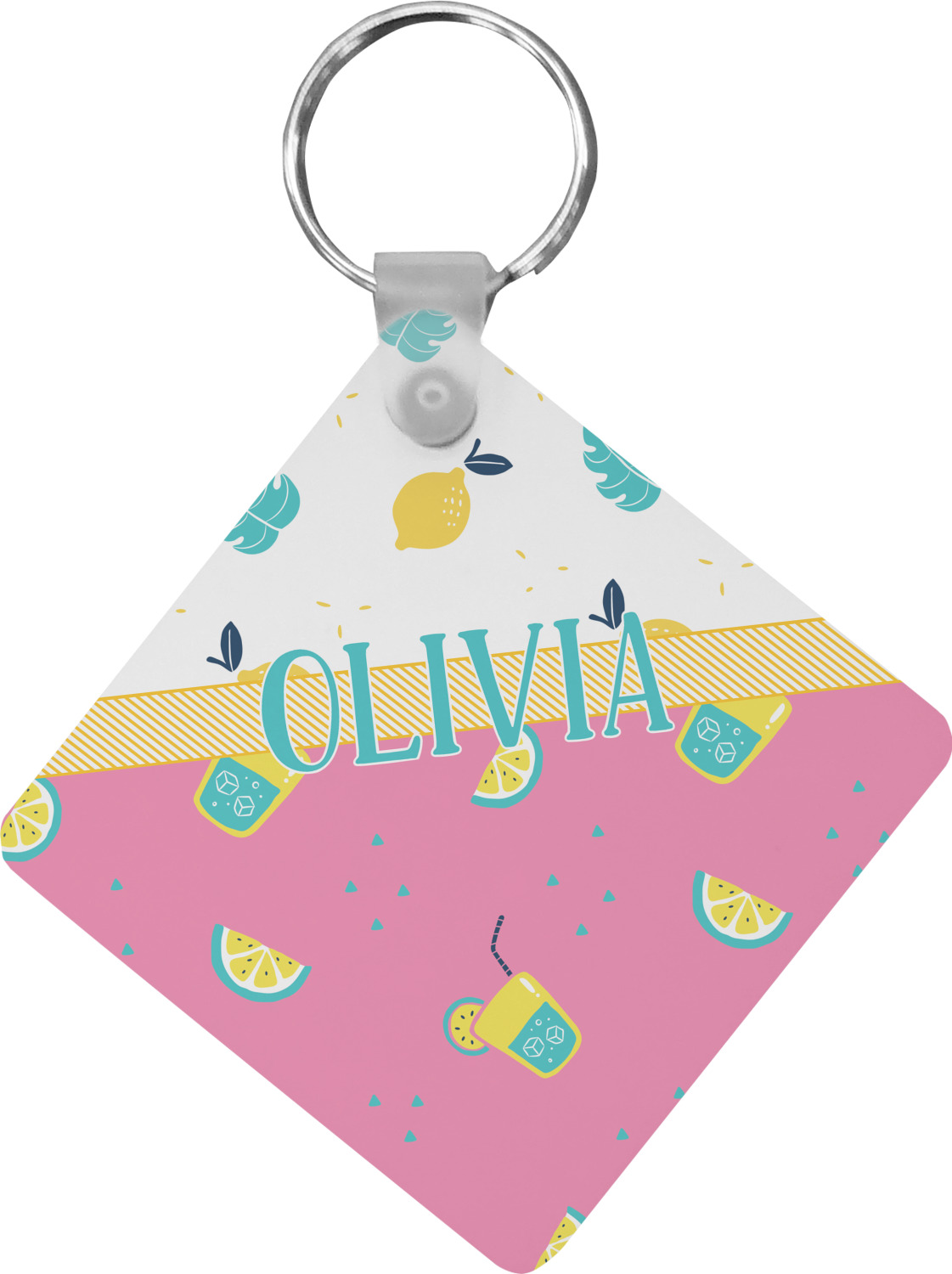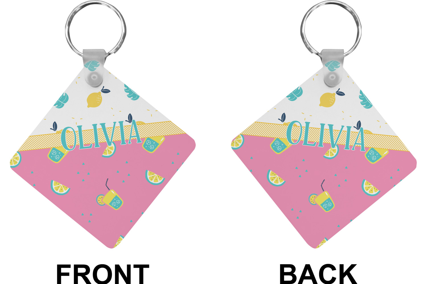 Our personalized keychains attach to the included metal, split key ring with a plastic, removable snap. Since a metal ring is included with your purchase, you have the liberty to keep your keys together on the ring, with or without your unique keychain. We offer this keychain in three different shapes: circle, heart, or diamond. We print your personalized design(s) on both sides of the key chain, and the surface has a glossy, reflective finish that only emphasizes your design. Each keychain is approximately 2.25 by 2.25 inches.