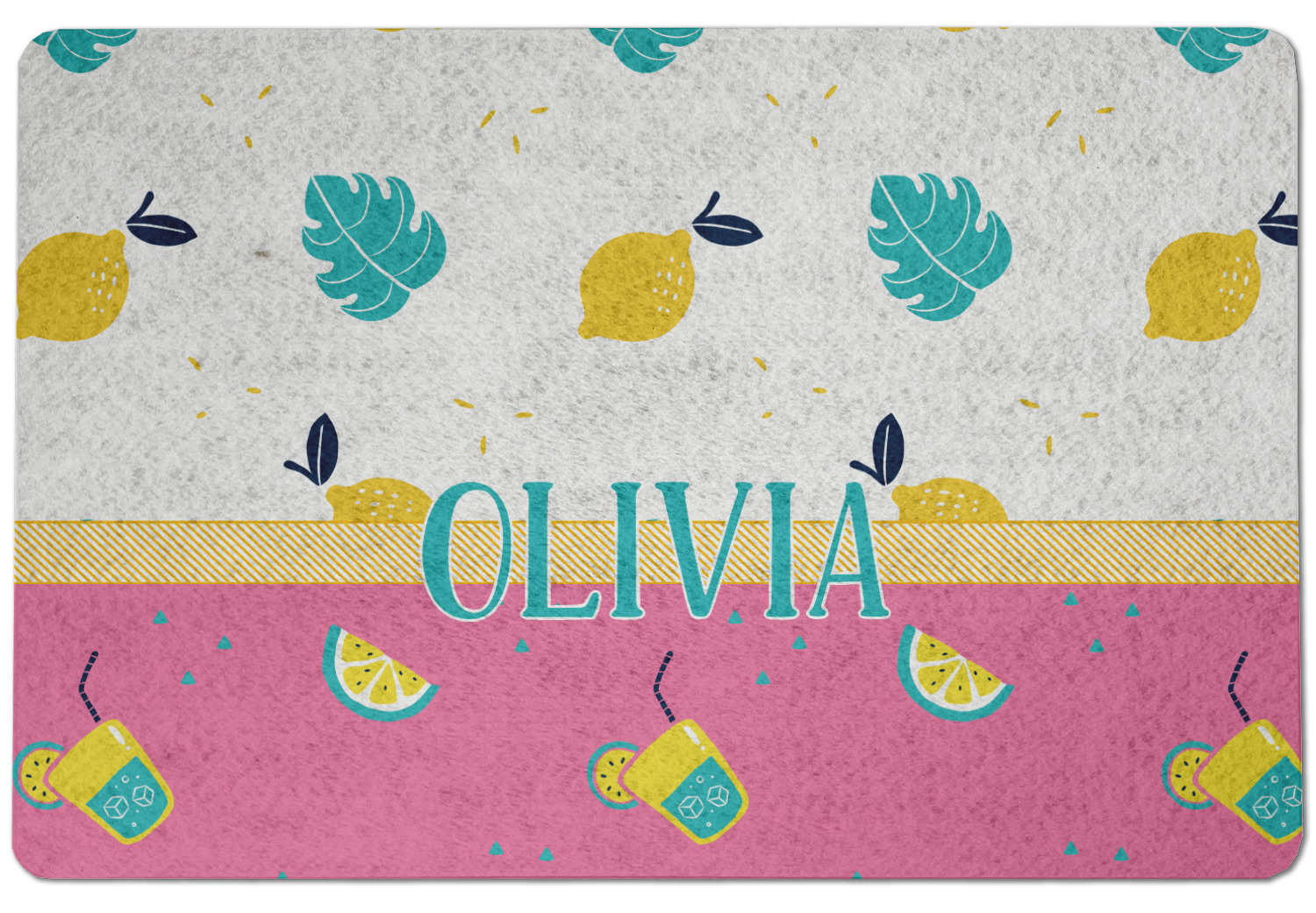 Summer Lemonade is a bold pink with pops of yellow cups of lemonade and green shapes. This is the perfect design for beach and pool gear! Get some fun flip-flops or put it on a beach towel!