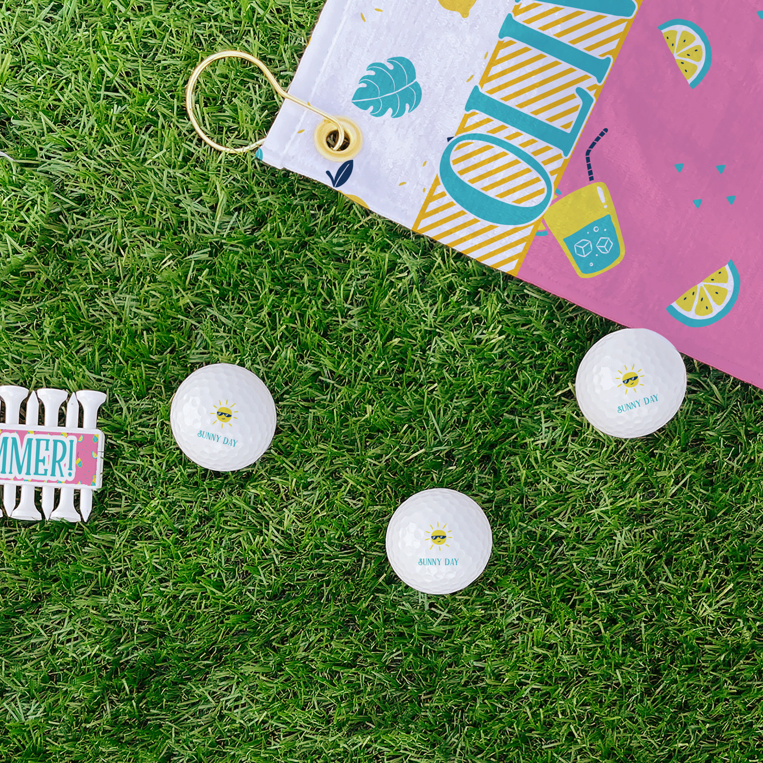 Summer Lemonade is a bold pink with pops of yellow cups of lemonade and green shapes. This is the perfect design for beach and pool gear! Get some fun flip-flops or put it on a beach towel!