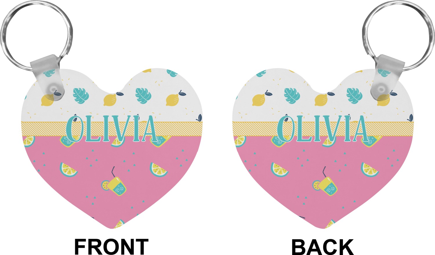 Our personalized keychains attach to the included metal, split key ring with a plastic, removable snap. Since a metal ring is included with your purchase, you have the liberty to keep your keys together on the ring, with or without your unique keychain. We offer this keychain in three different shapes: circle, heart, or diamond. We print your personalized design(s) on both sides of the key chain, and the surface has a glossy, reflective finish that only emphasizes your design. Each keychain is approximately 2.25 by 2.25 inches.
