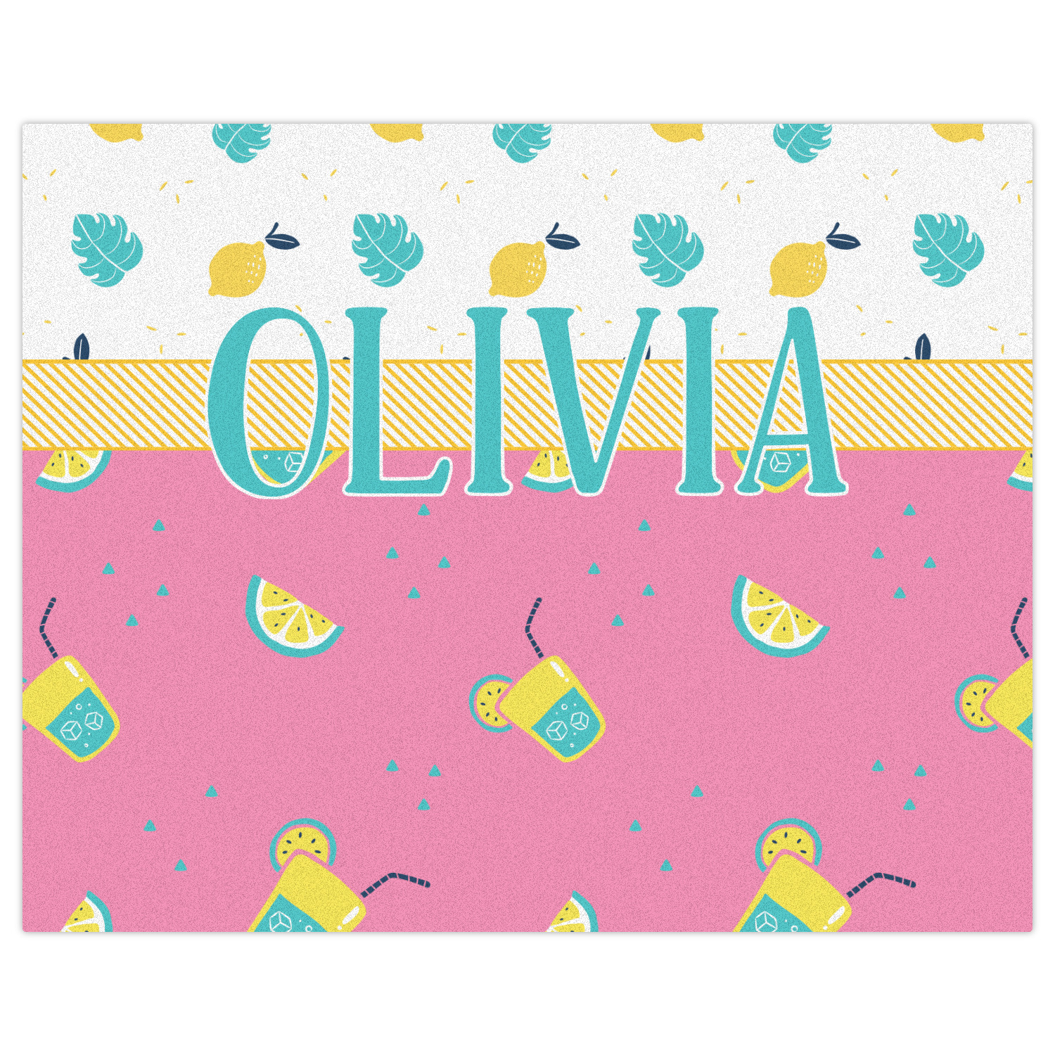 Summer Lemonade is a bold pink with pops of yellow cups of lemonade and green shapes. This is the perfect design for beach and pool gear! Get some fun flip-flops or put it on a beach towel!