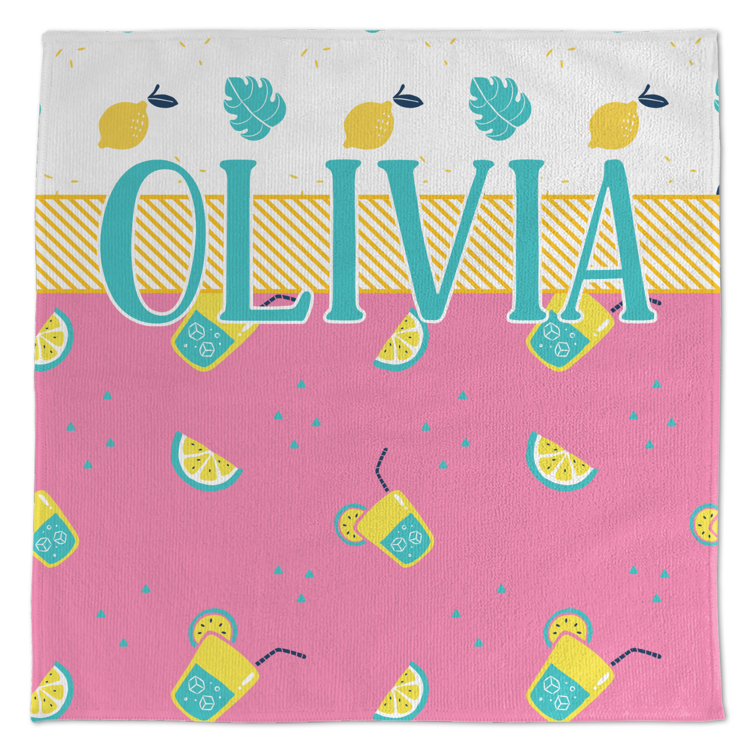 Summer Lemonade is a bold pink with pops of yellow cups of lemonade and green shapes. This is the perfect design for beach and pool gear! Get some fun flip-flops or put it on a beach towel!