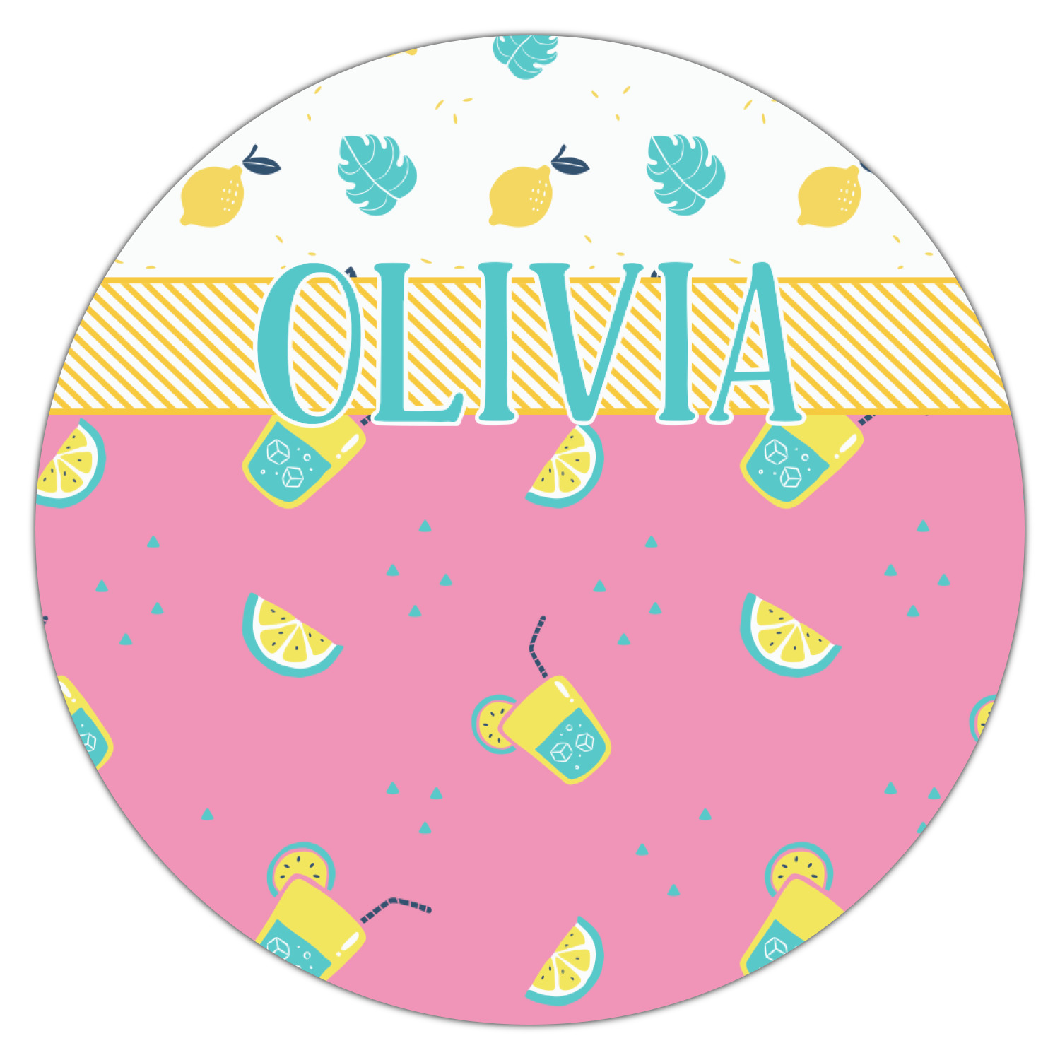 Summer Lemonade is a bold pink with pops of yellow cups of lemonade and green shapes. This is the perfect design for beach and pool gear! Get some fun flip-flops or put it on a beach towel!
