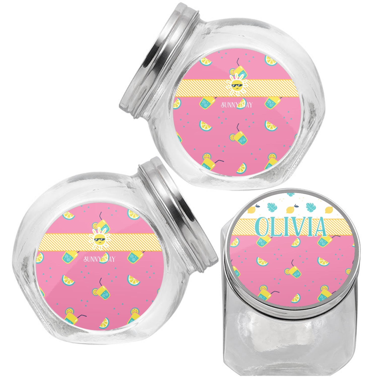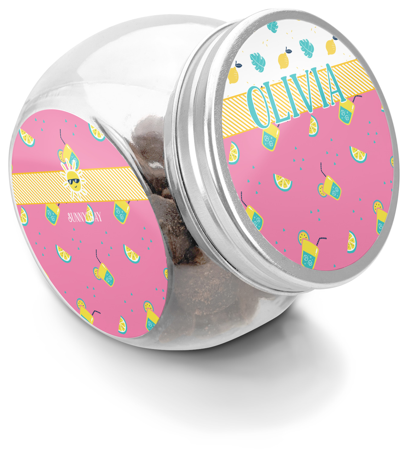 This treat jar is an excellent way to store treats for your favorite canine or feline. Moreover, their delicate, classy appearance makes them a tasteful addition to your countertop's décor. Crafted from clear glass, its unique construction and silver metal, screw-on lid allows for quick and easy access. Three, permanent, vinyl stickers are applied to both sides of the jar and lid, presenting your personalized design. The base of this glass, dog treat jar is 3.4" x 4.75", and the jar stands at 5" tall. Though on the smaller side, this jar is best suited for smaller treats or training treats.
