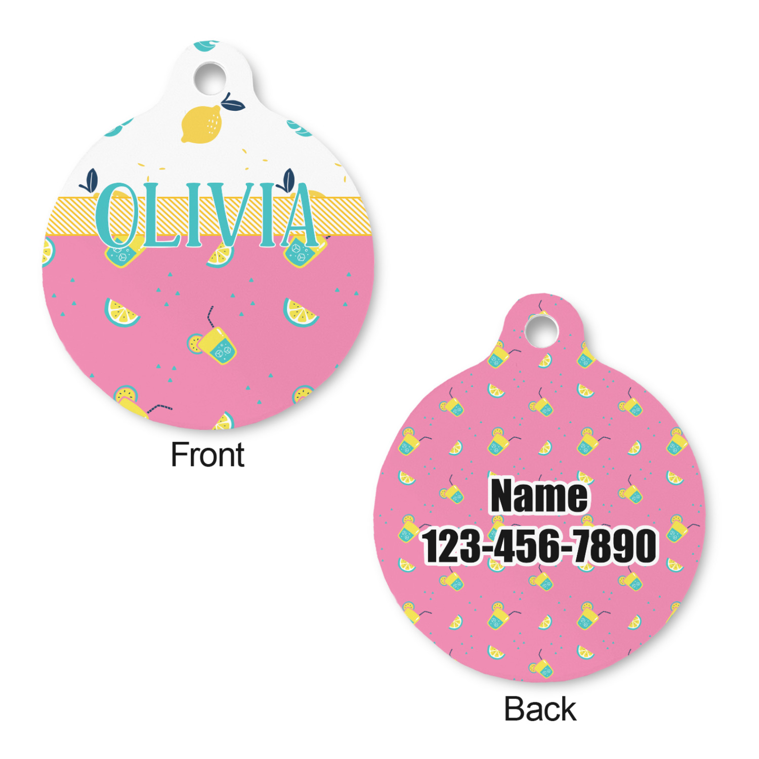 Go ahead; skip the monotony of plain pet ID tags with your very own, customized & personalized, round pet tag! This pet ID tag, fitting for both cats and dogs, will catch the eye of any onlooker (humans, canines, and felines, alike!) and accentuate your pet's individual personality.