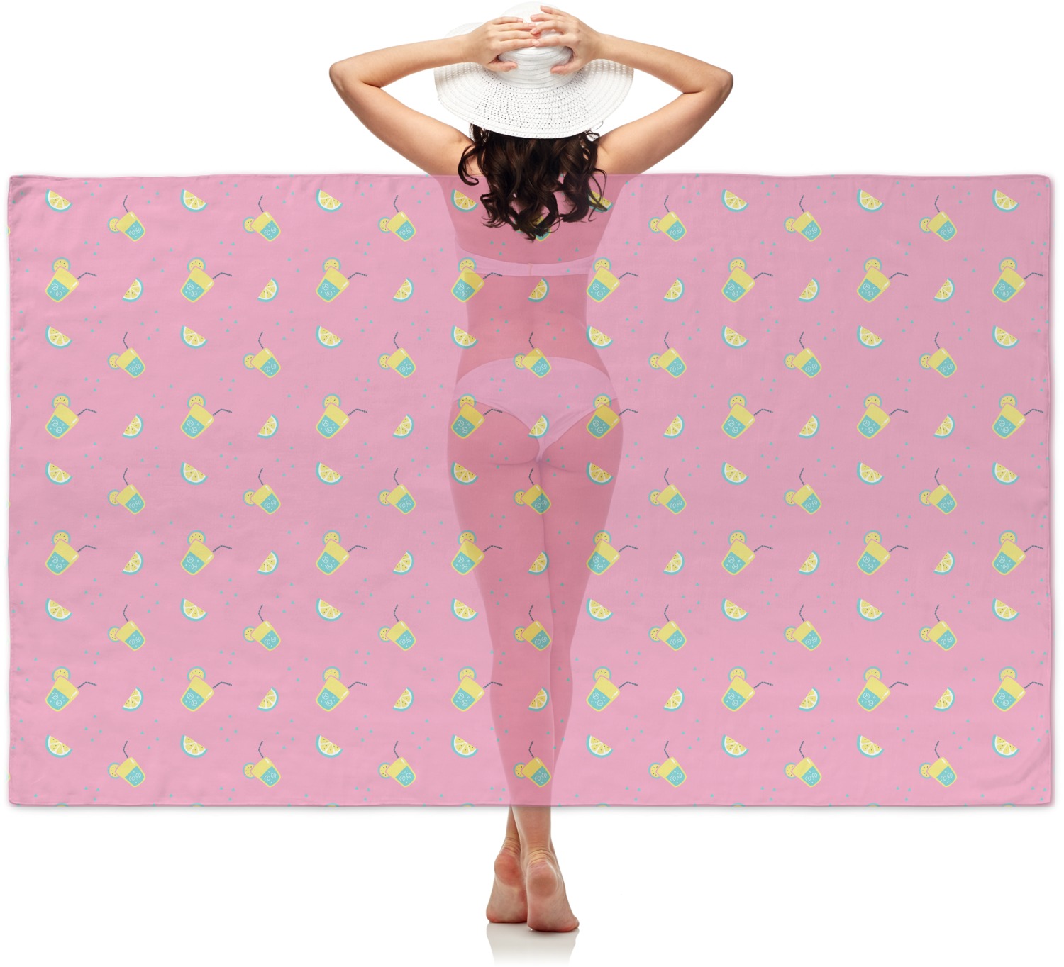 Summer Lemonade is a bold pink with pops of yellow cups of lemonade and green shapes. This is the perfect design for beach and pool gear! Get some fun flip-flops or put it on a beach towel!