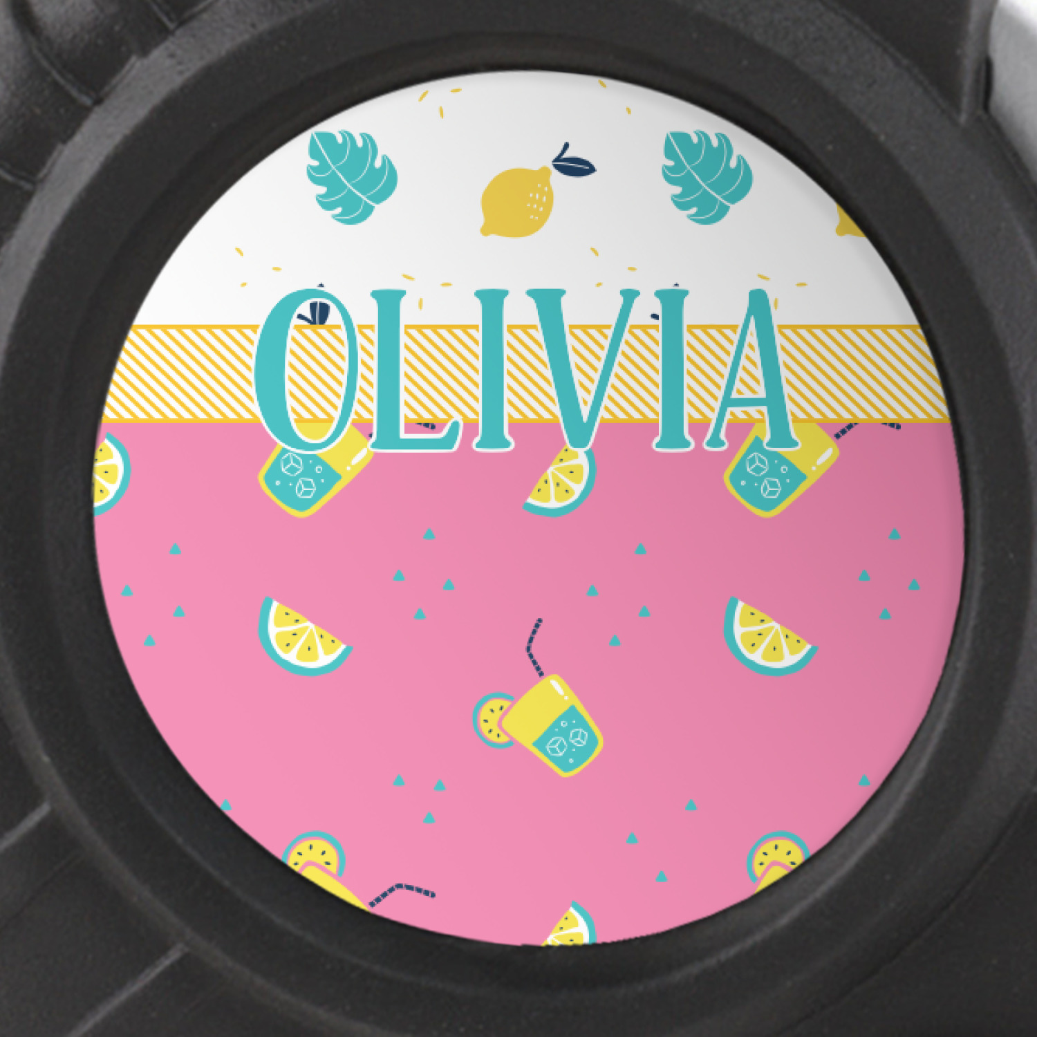 Summer Lemonade is a bold pink with pops of yellow cups of lemonade and green shapes. This is the perfect design for beach and pool gear! Get some fun flip-flops or put it on a beach towel!