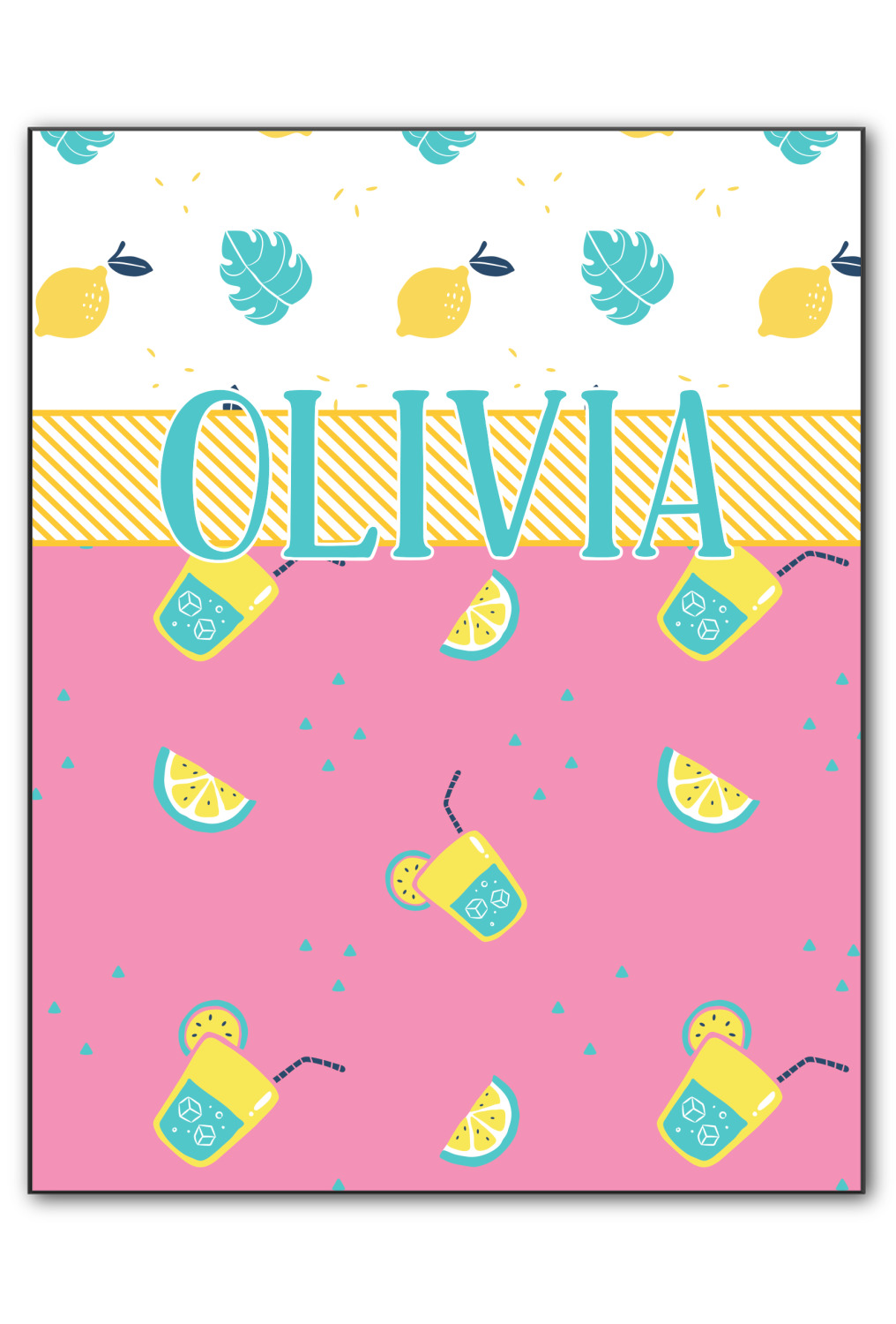 Summer Lemonade is a bold pink with pops of yellow cups of lemonade and green shapes. This is the perfect design for beach and pool gear! Get some fun flip-flops or put it on a beach towel!