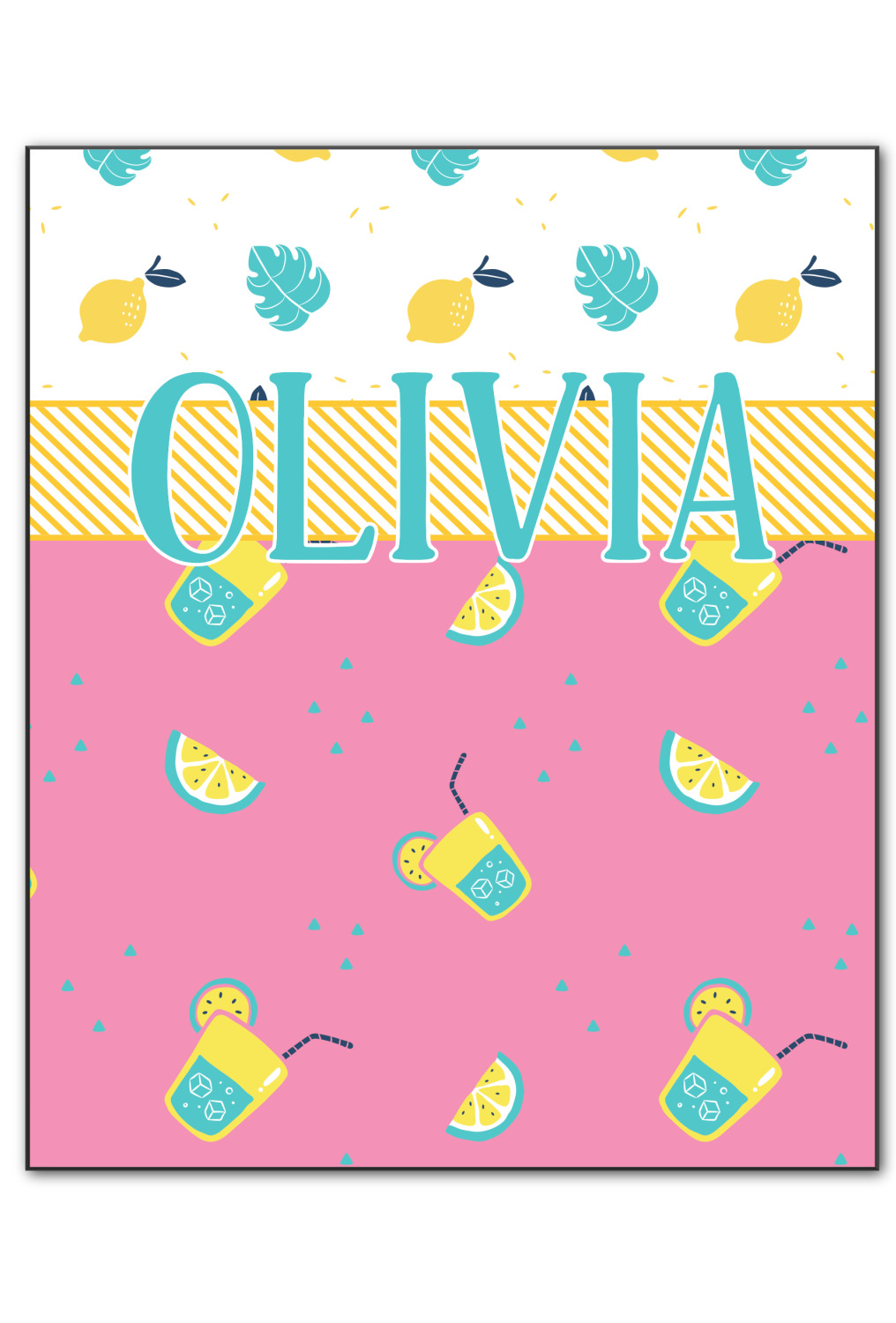 Summer Lemonade is a bold pink with pops of yellow cups of lemonade and green shapes. This is the perfect design for beach and pool gear! Get some fun flip-flops or put it on a beach towel!