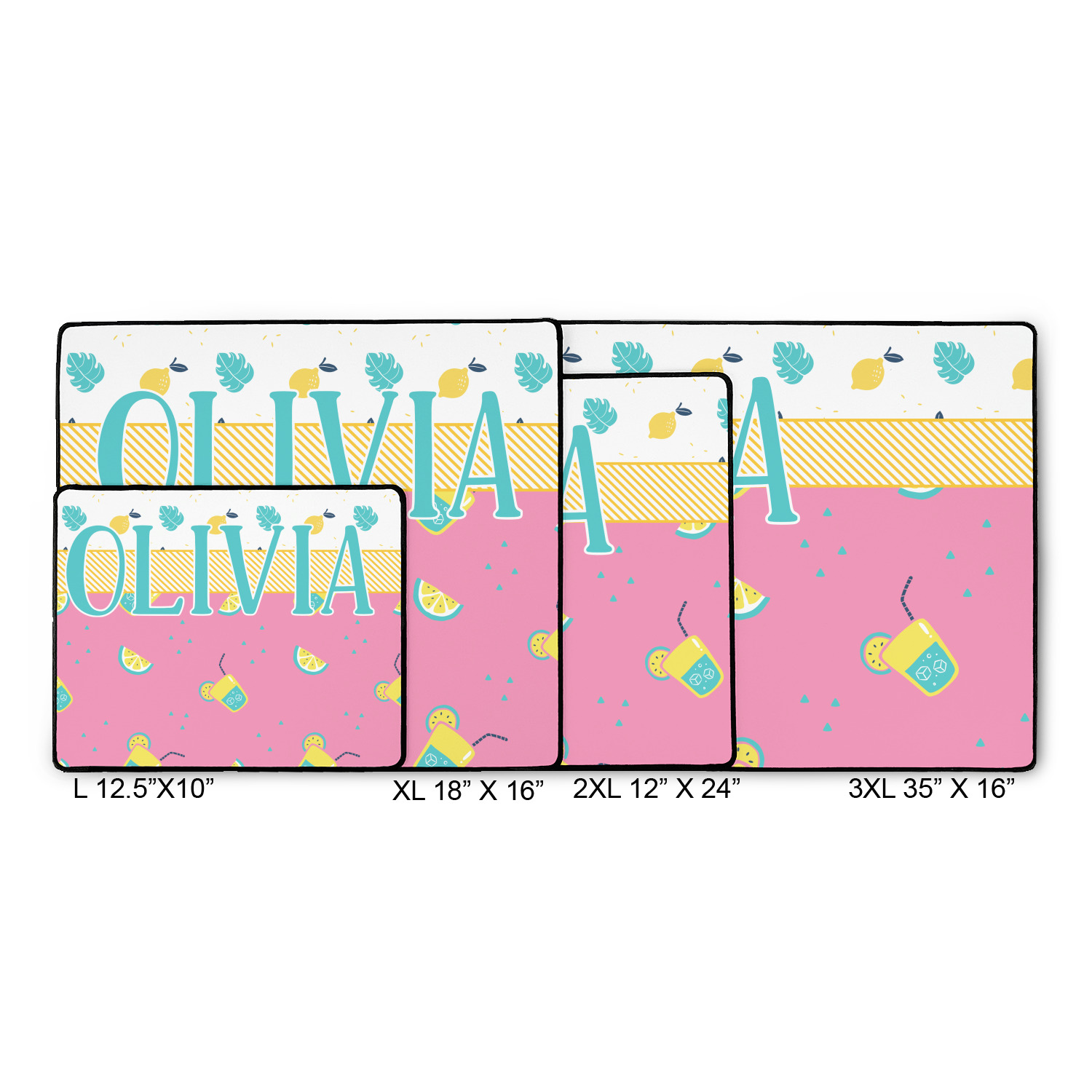 Summer Lemonade is a bold pink with pops of yellow cups of lemonade and green shapes. This is the perfect design for beach and pool gear! Get some fun flip-flops or put it on a beach towel!
