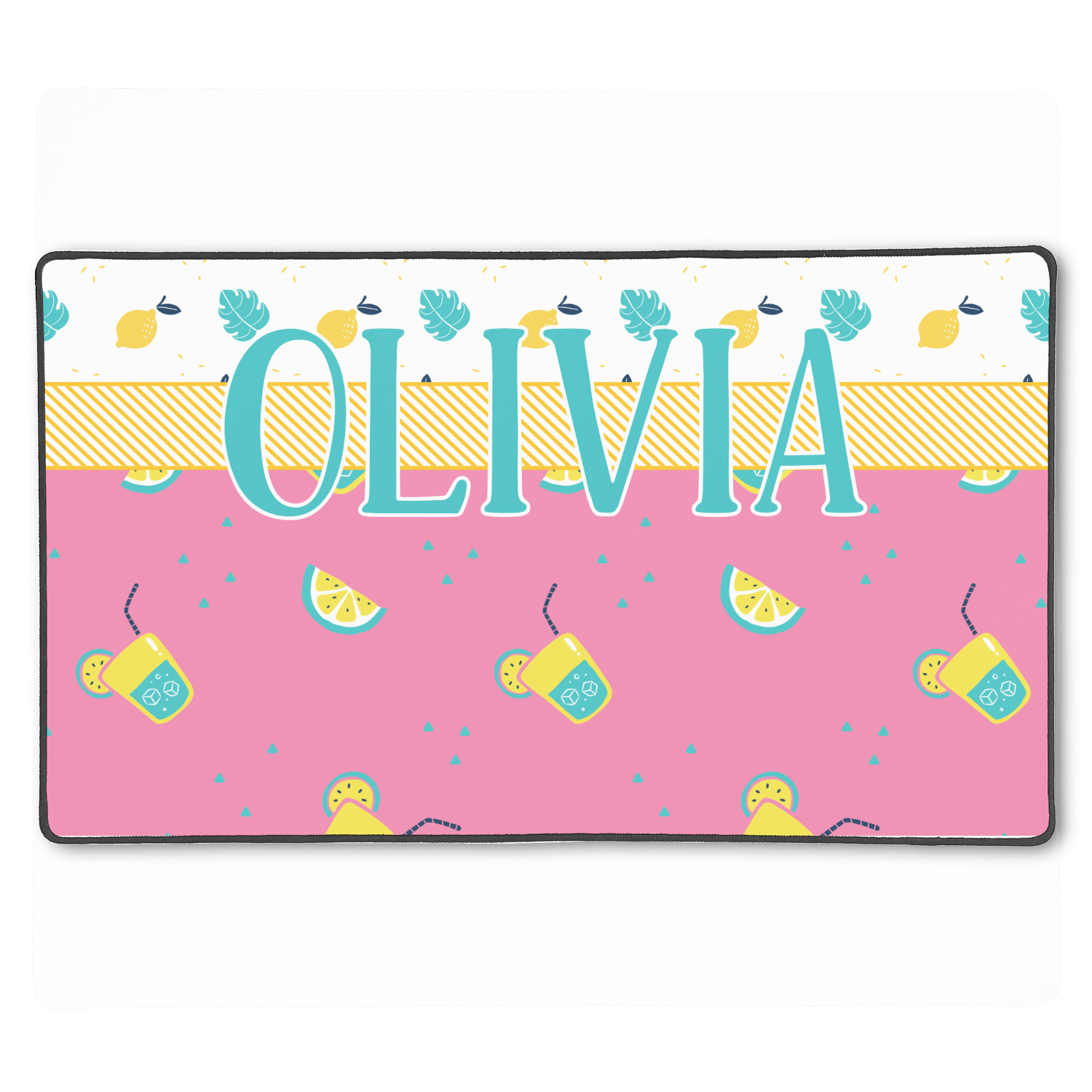 Summer Lemonade is a bold pink with pops of yellow cups of lemonade and green shapes. This is the perfect design for beach and pool gear! Get some fun flip-flops or put it on a beach towel!