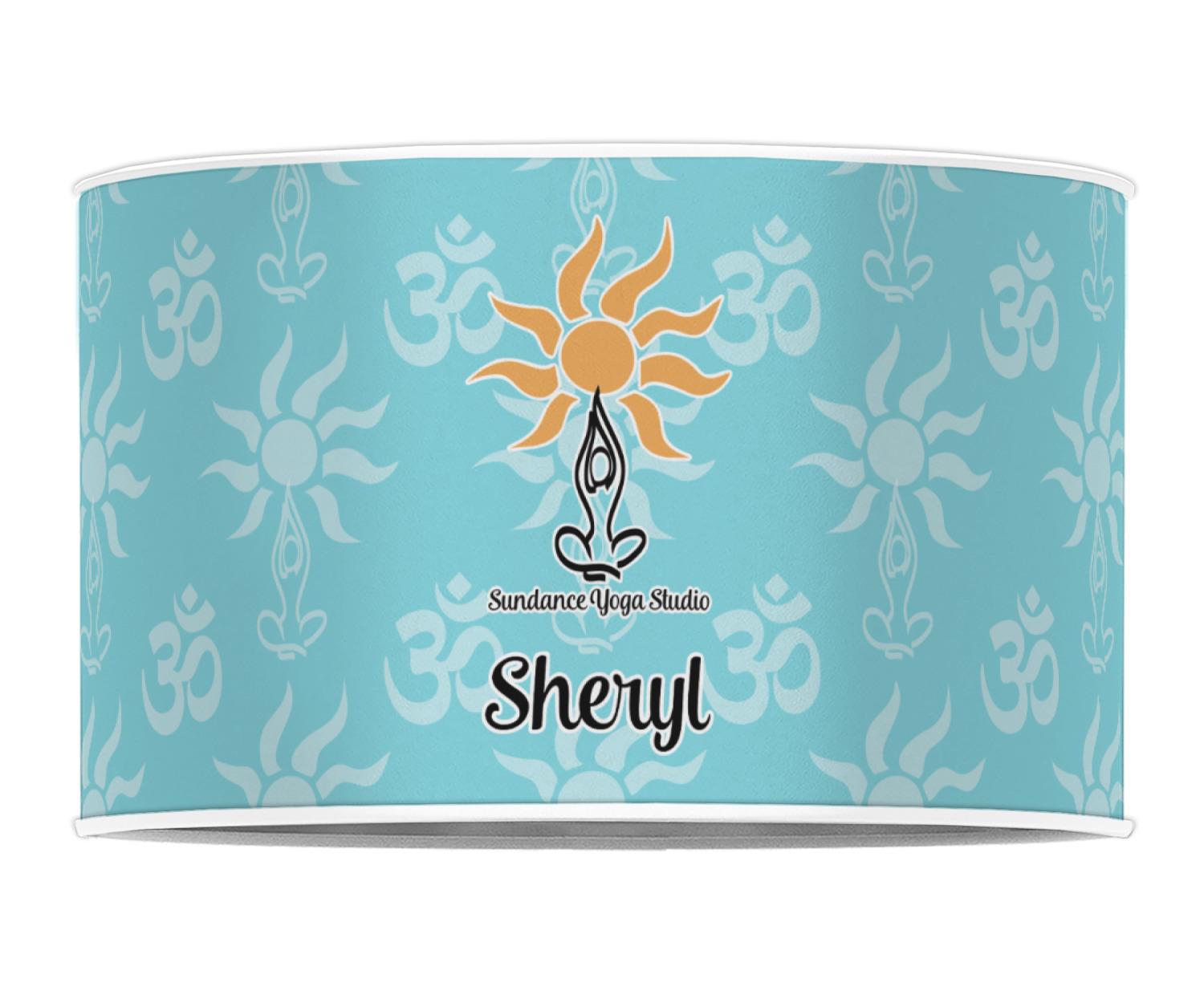 This calming design is dominantly a gorgeous light teal with the the Sundance logo, as well as the om symbol, repeating in the background. The main logo is prominently displayed front and center. The logo is a simple drawing of a figure doing the lotus pose with a sun rising above them. "Sundance Yoga Studio" is written beneath the logo. You personalization goes directly under the logo to create a finished design.