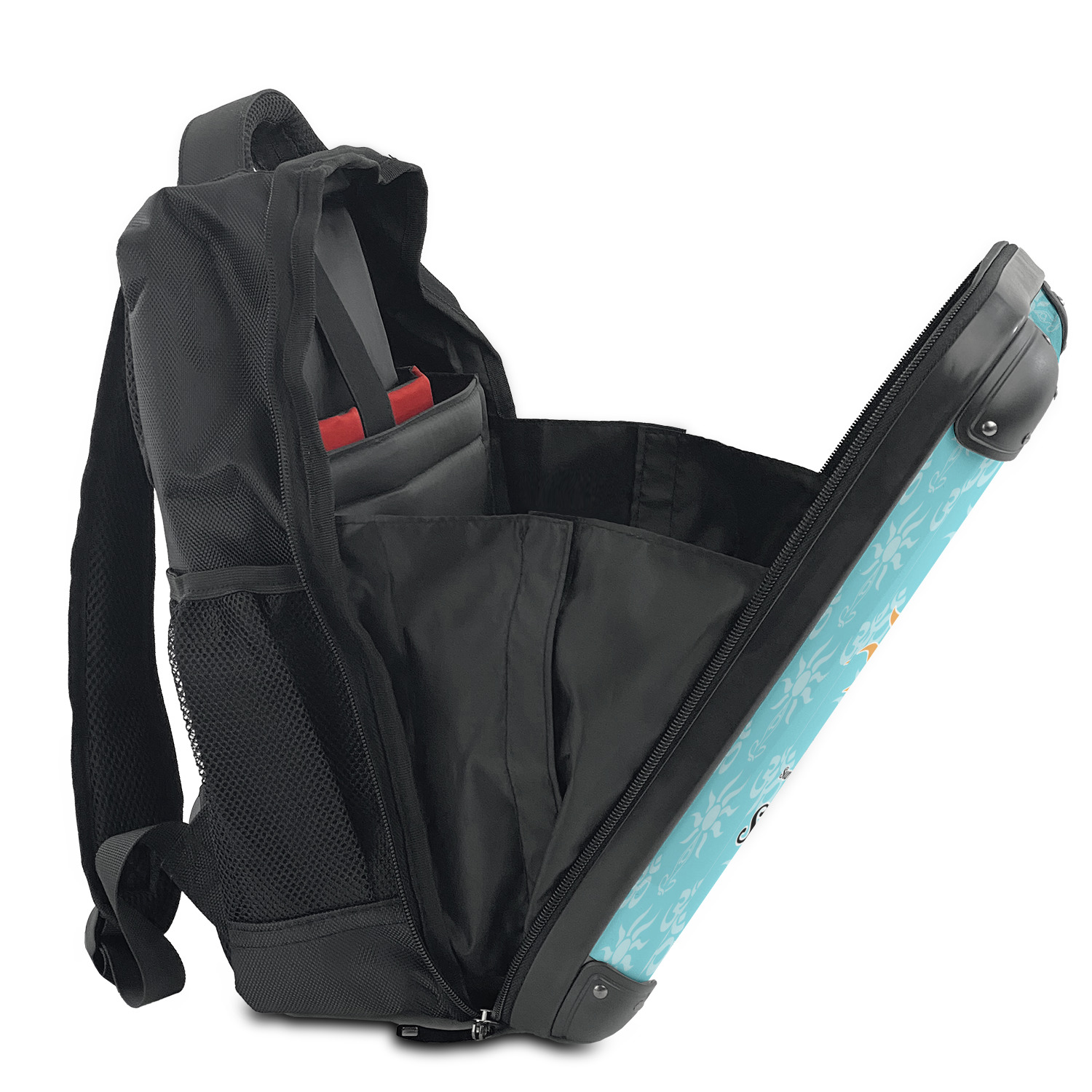Aside from the sleeves there is a large open space in the backpack to ensure you can fit all of your required belongings. The hard outer shell on the outside helps protect your possessions inside and when customized adds that personal touch to make the backpack distinctly yours and unlike anyone elses.
