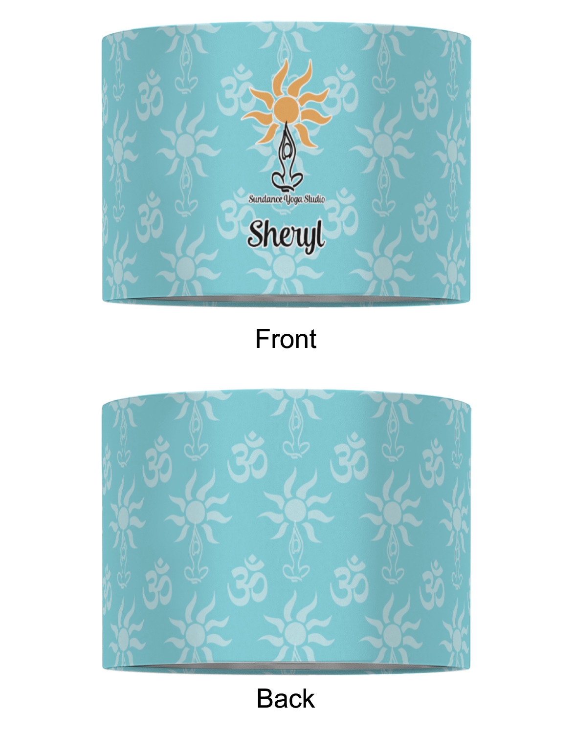 This calming design is dominantly a gorgeous light teal with the the Sundance logo, as well as the om symbol, repeating in the background. The main logo is prominently displayed front and center. The logo is a simple drawing of a figure doing the lotus pose with a sun rising above them. "Sundance Yoga Studio" is written beneath the logo. You personalization goes directly under the logo to create a finished design.