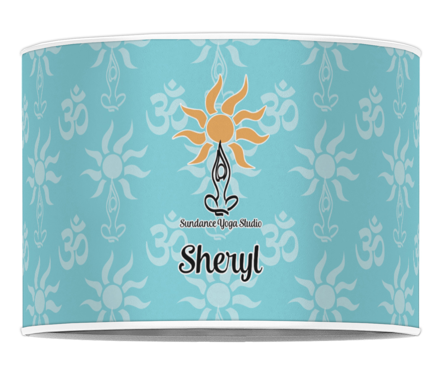 This calming design is dominantly a gorgeous light teal with the the Sundance logo, as well as the om symbol, repeating in the background. The main logo is prominently displayed front and center. The logo is a simple drawing of a figure doing the lotus pose with a sun rising above them. "Sundance Yoga Studio" is written beneath the logo. You personalization goes directly under the logo to create a finished design.