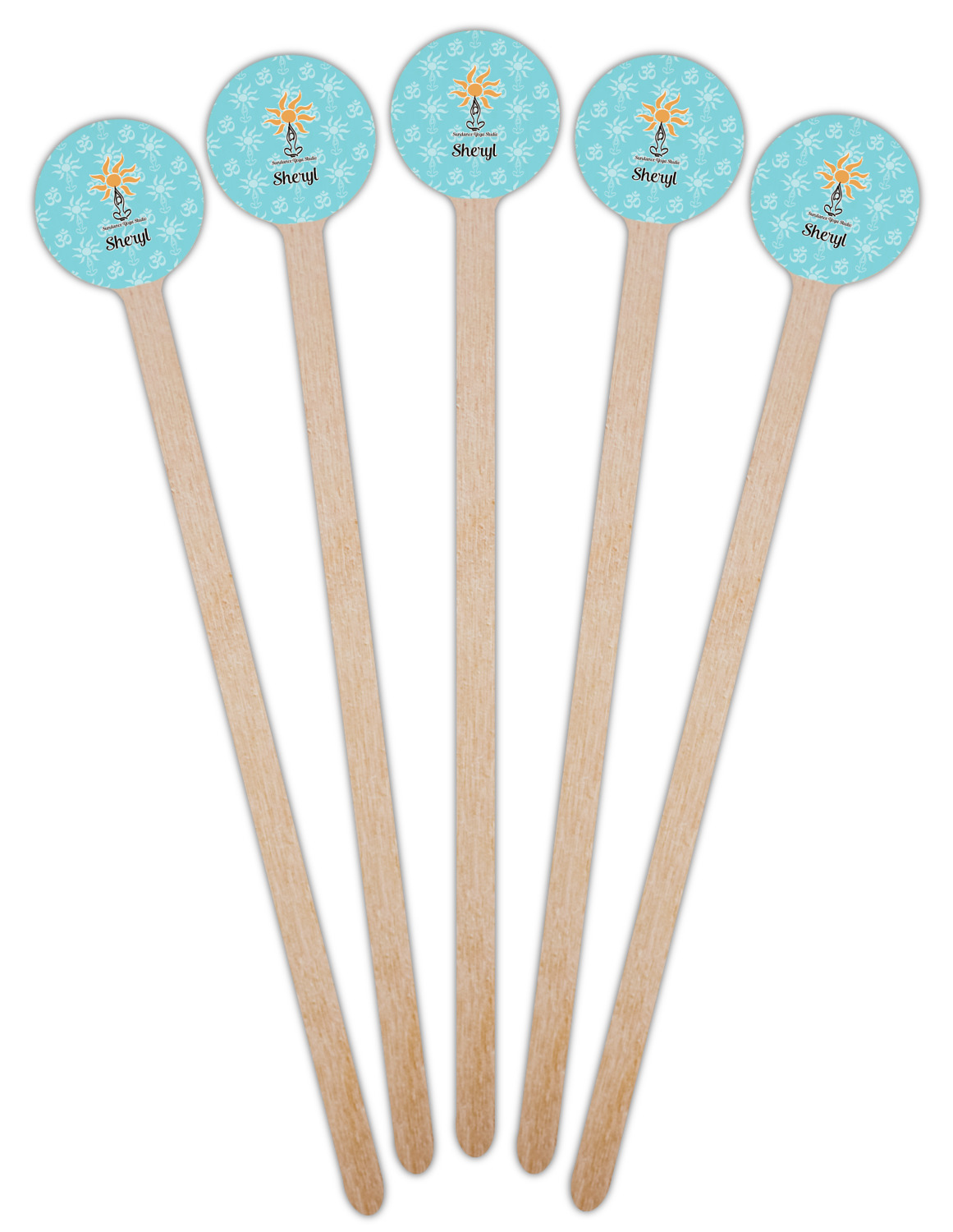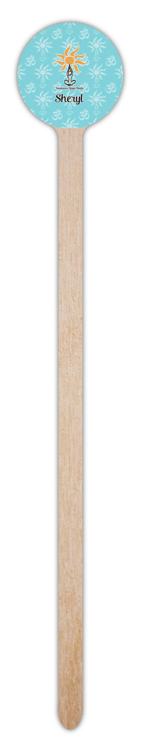 This calming design is dominantly a gorgeous light teal with the the Sundance logo, as well as the om symbol, repeating in the background. The main logo is prominently displayed front and center. The logo is a simple drawing of a figure doing the lotus pose with a sun rising above them. "Sundance Yoga Studio" is written beneath the logo. You personalization goes directly under the logo to create a finished design.