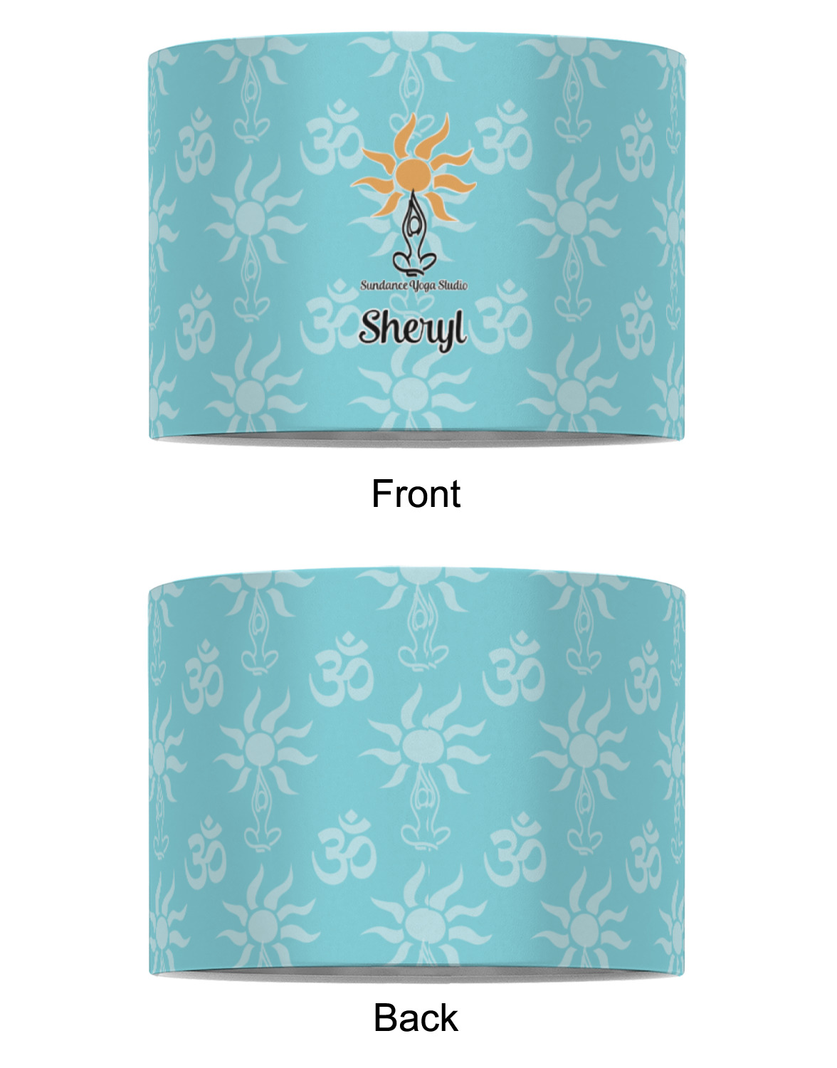 This calming design is dominantly a gorgeous light teal with the the Sundance logo, as well as the om symbol, repeating in the background. The main logo is prominently displayed front and center. The logo is a simple drawing of a figure doing the lotus pose with a sun rising above them. "Sundance Yoga Studio" is written beneath the logo. You personalization goes directly under the logo to create a finished design.