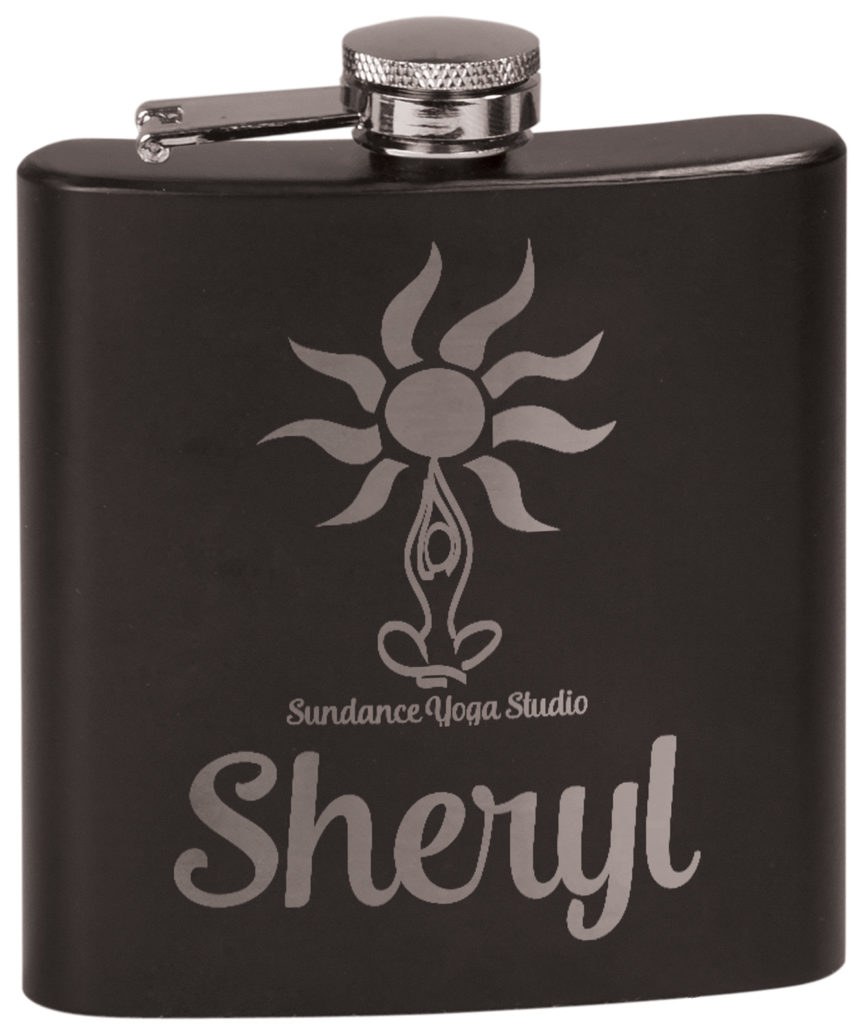 Built from a stainless steel and then covered with a black coating, this hip flask, has a very classy appearance. Similar to the standard flask, this stainless steel flask has the traditional curved shape for a snug fit in your palm. This flask set also includes a traditional screw and flip lid and liquid funnel in a gift box. At 4 by 4.5 inches, this flask can hold up to 6 ounces. Your personalized design is laser-engraved across the front of this flask.