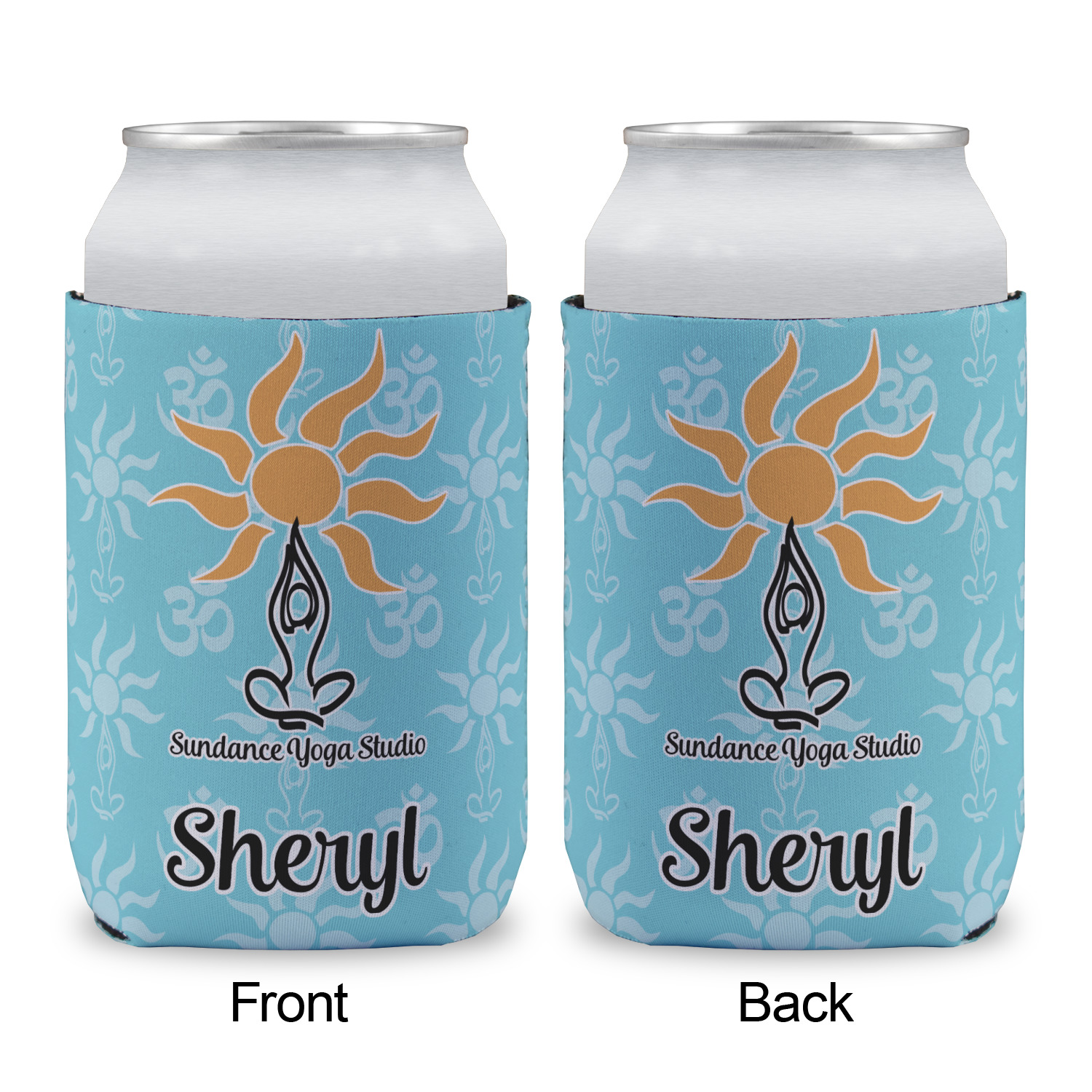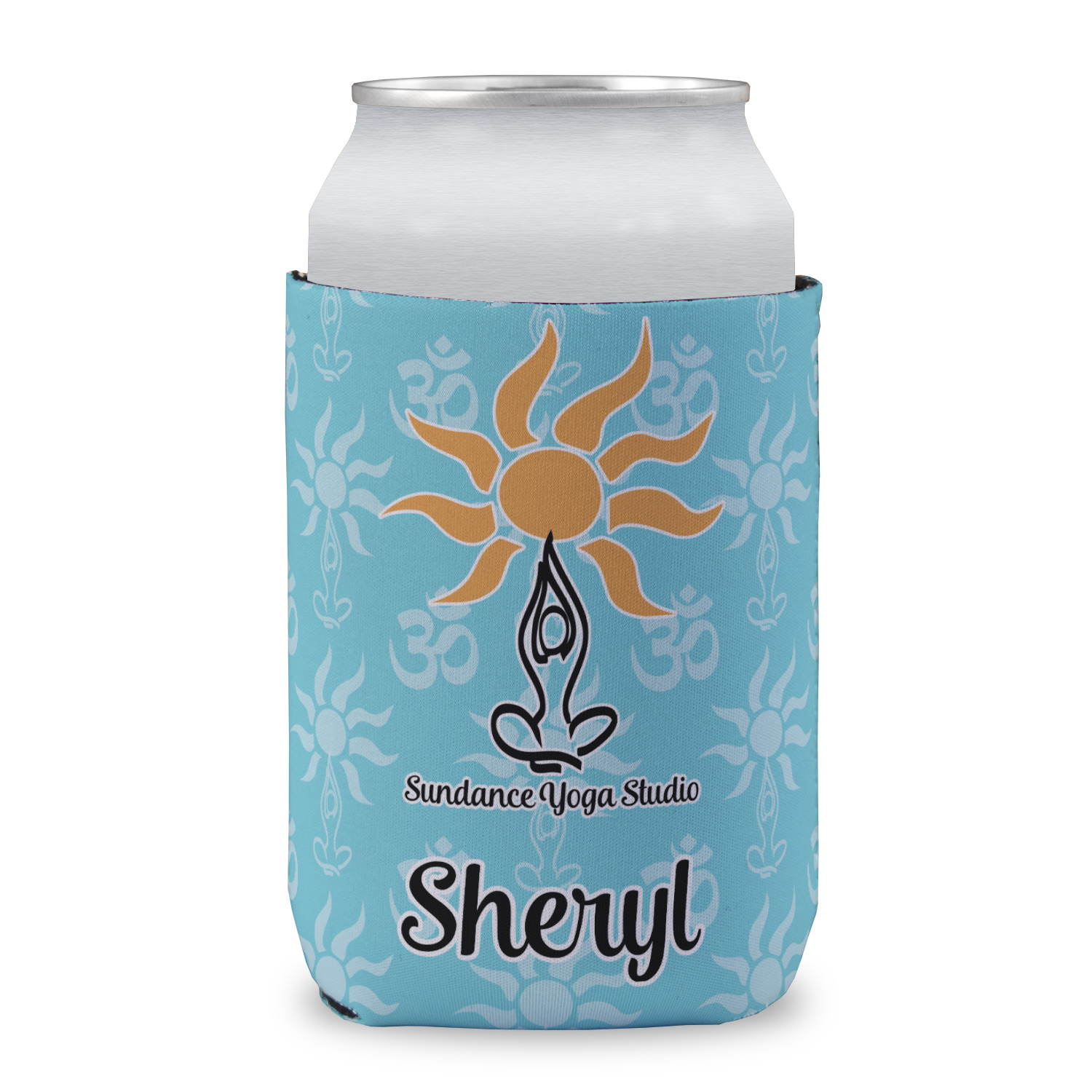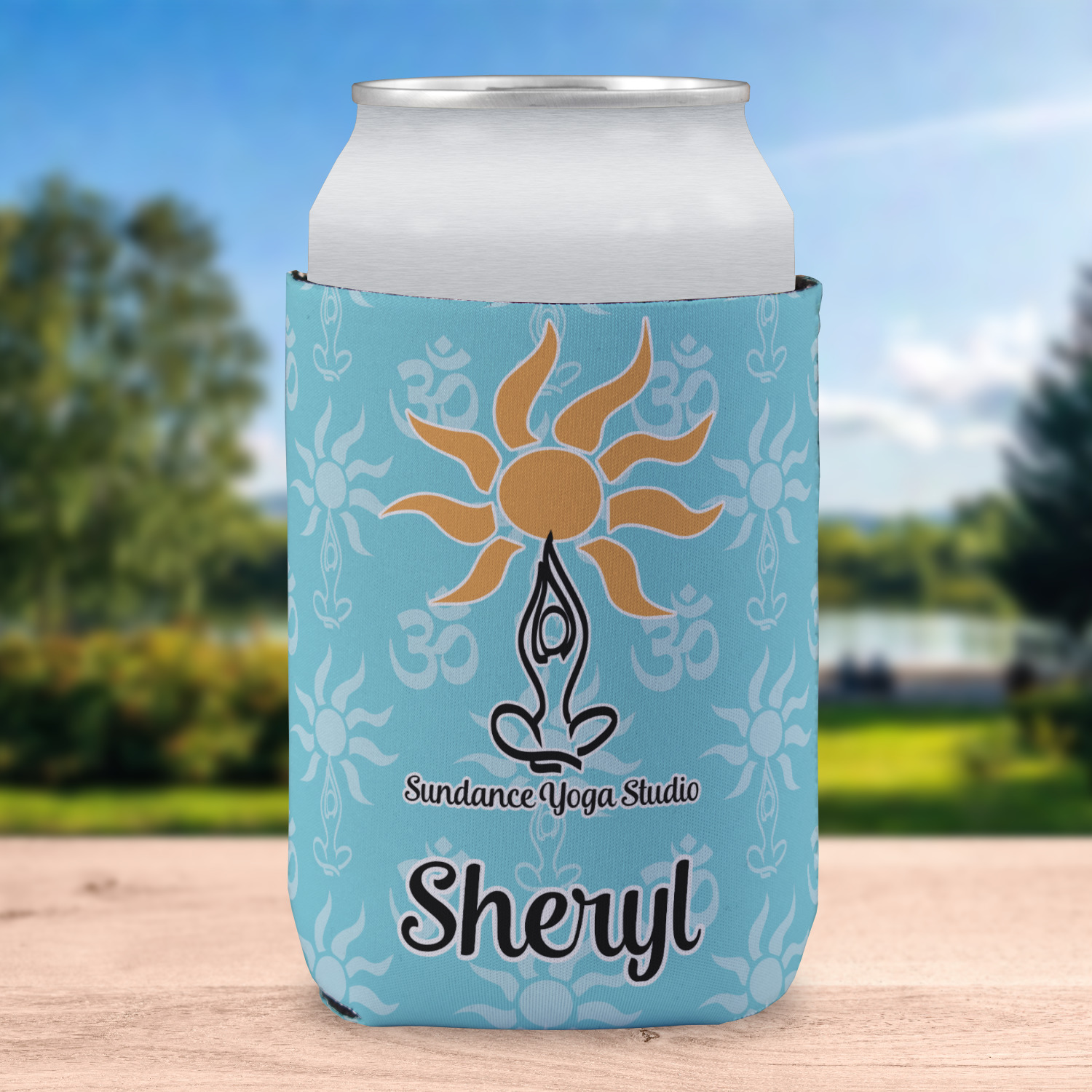 This calming design is dominantly a gorgeous light teal with the the Sundance logo, as well as the om symbol, repeating in the background. The main logo is prominently displayed front and center. The logo is a simple drawing of a figure doing the lotus pose with a sun rising above them. "Sundance Yoga Studio" is written beneath the logo. You personalization goes directly under the logo to create a finished design.