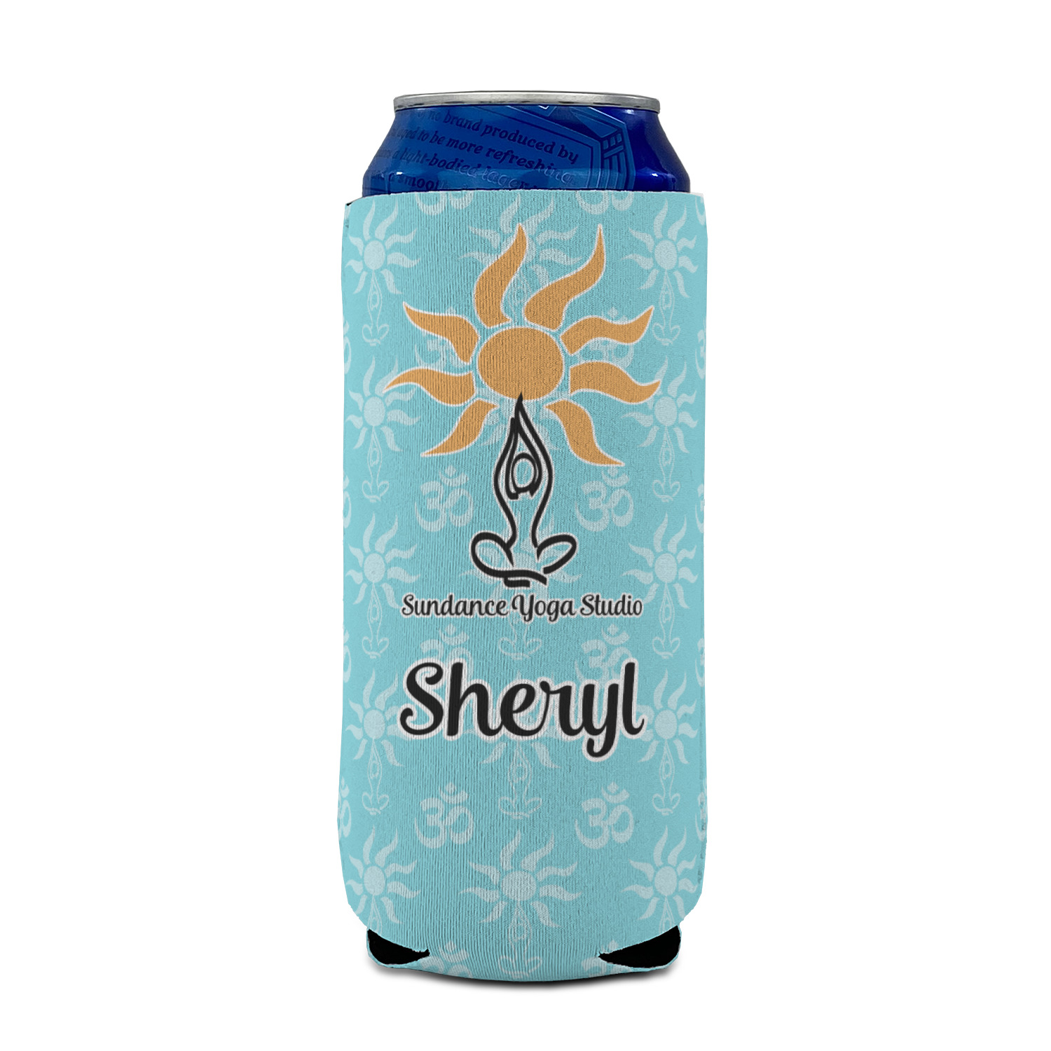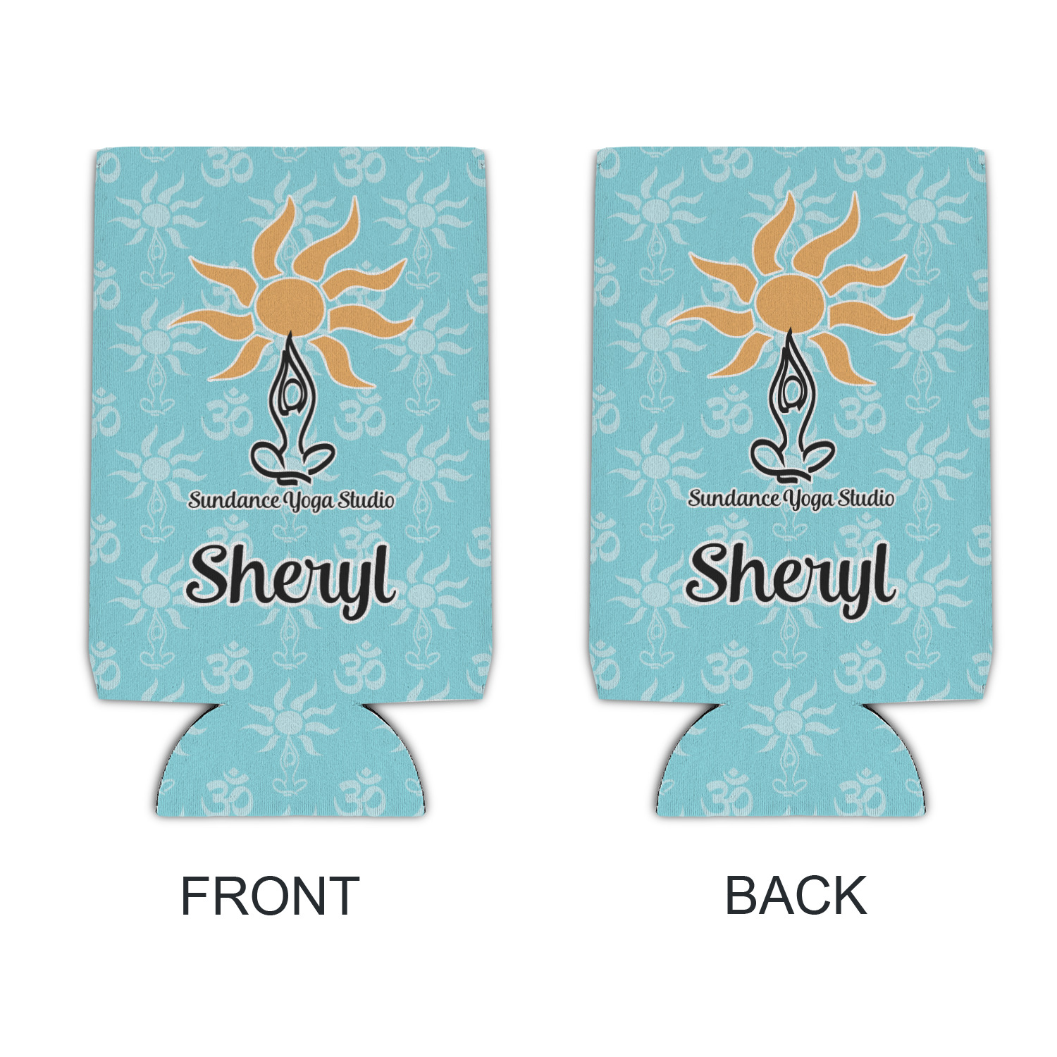 This calming design is dominantly a gorgeous light teal with the the Sundance logo, as well as the om symbol, repeating in the background. The main logo is prominently displayed front and center. The logo is a simple drawing of a figure doing the lotus pose with a sun rising above them. "Sundance Yoga Studio" is written beneath the logo. You personalization goes directly under the logo to create a finished design.
