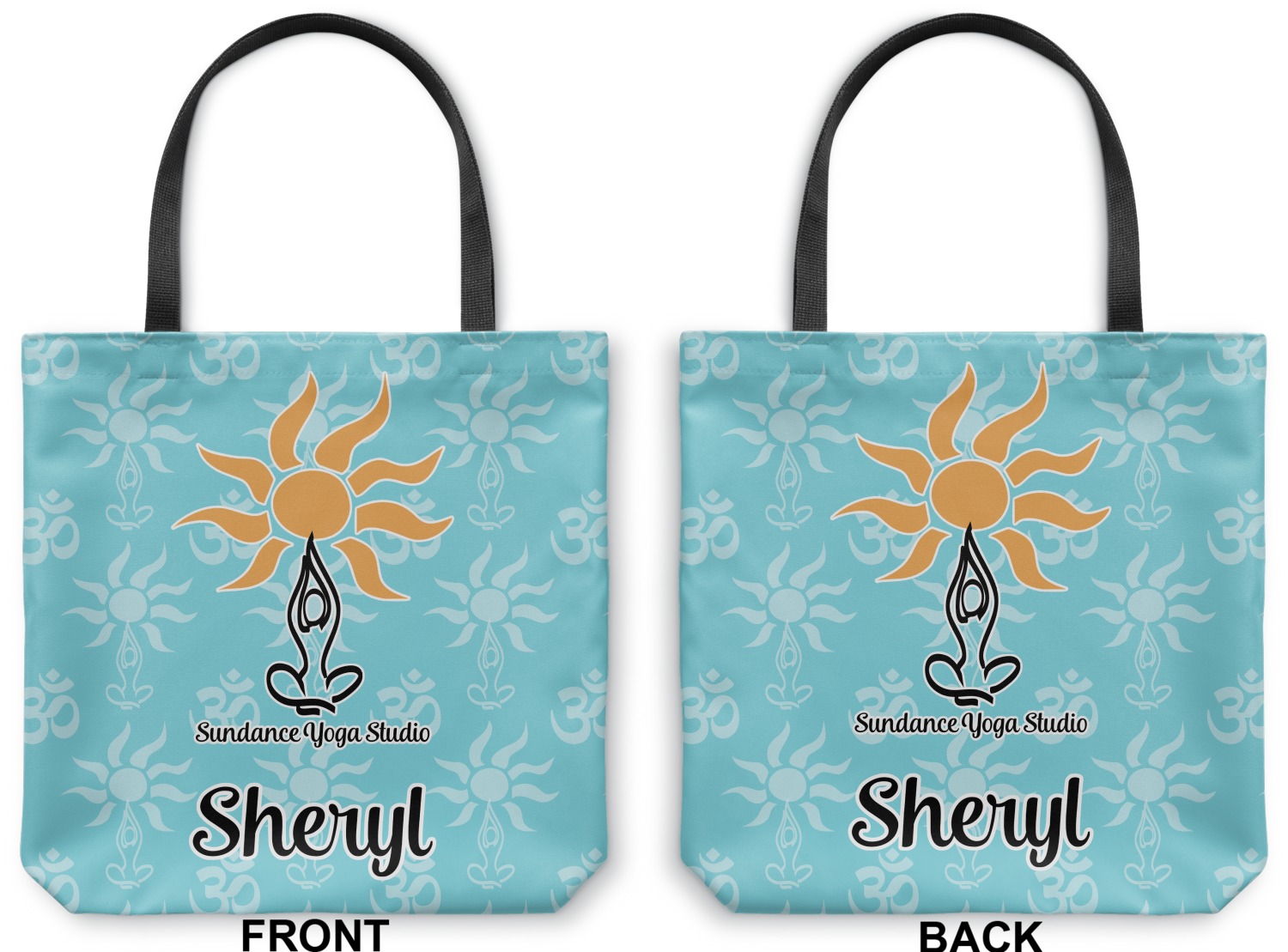 Our totes are made right here in the USA. Your design is printed on canvas fabric; the fabric is then cut and sewn on the sides and on the bottom to add an approximately 3.5 inch gusset. Black cotton handles are sewn in and reinforced. Your tote has a designs on both sides - the designs can be the same or different - the choice is yours. The inside of the tote has a black fused lining.