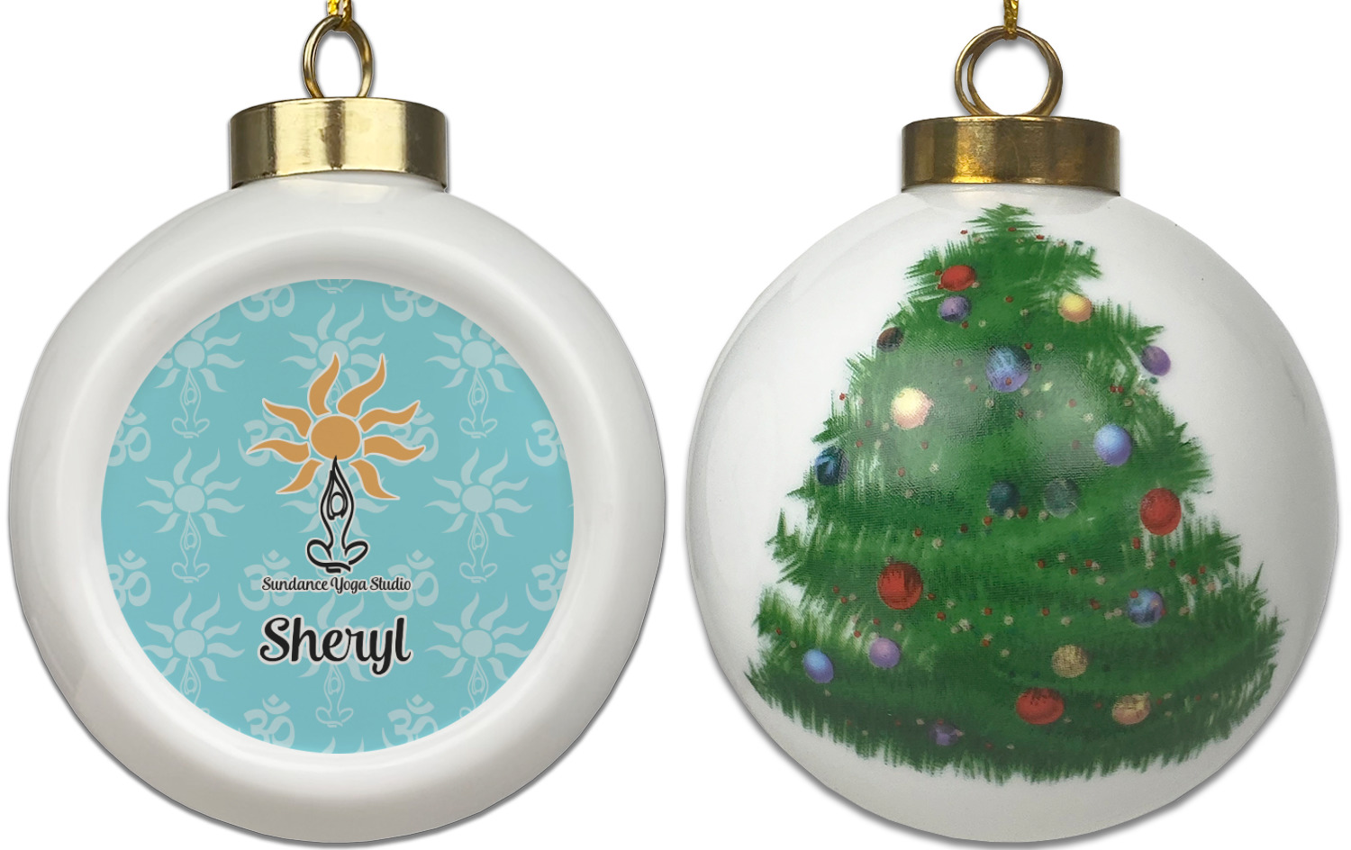 Our Christmas ornaments are a unique ceramic ball shape with a twist as it has a flat face to display your custom design! Select from one of our two design types - Christmas Tree or Poinsettia Garland - to adorn the curved back of your personal design. Each ornament measures 3H x 2.5W x 2D accompanied with a gold string accent for finishing touches to hang on your beautiful Christmas tree!