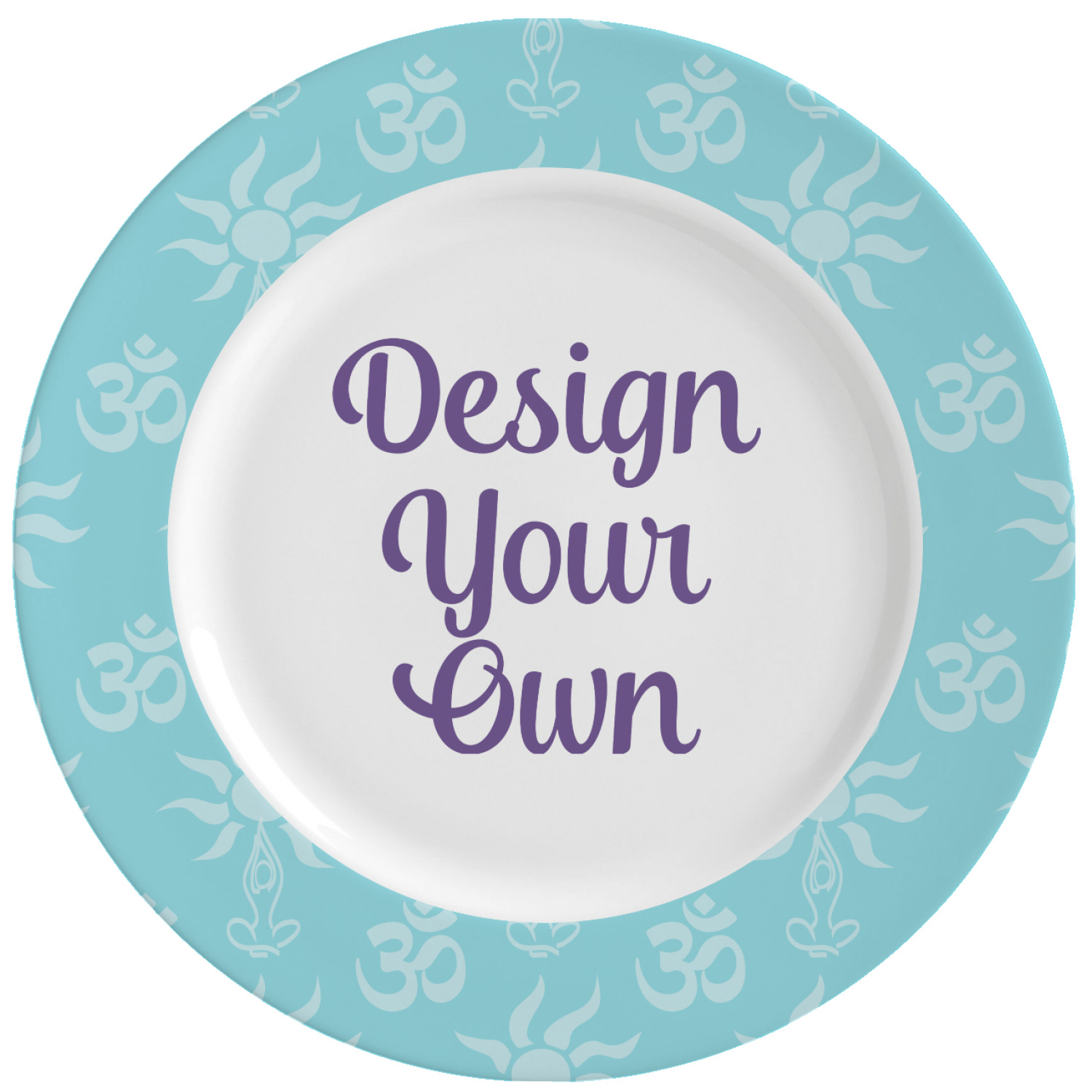 With this custom dinner plate, your have the option of personalizing the rim with an attractive pattern, and then displaying a name, graphic, or text in the center of the plate, against a white background. The exterior of this plate is also the same classic, white color. A glaze coats your plate, making your vividly colored design seem even more vibrant.
