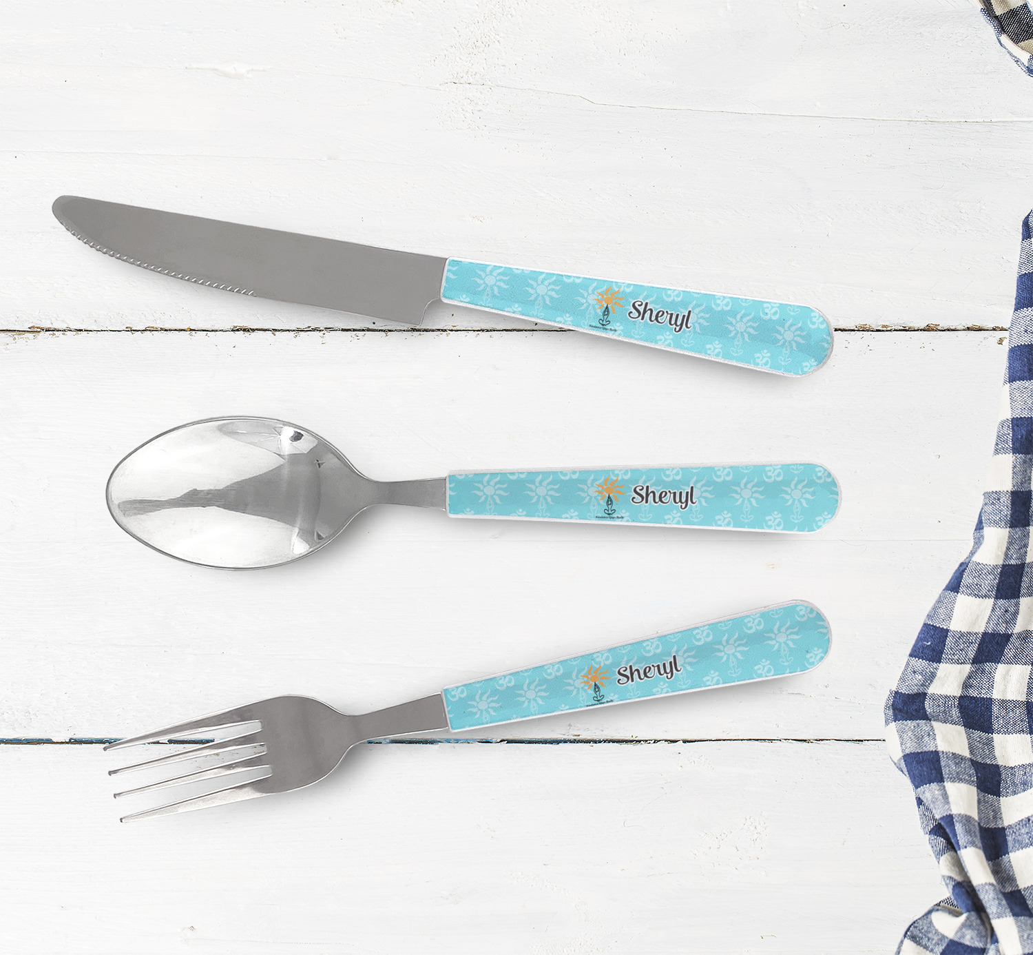 One of those items we all use on a daily basis and never give it much thought - cutlery. Having your own customized set of cutlery adds that special touch. A great addition to our custom plates and drinking pint glasses, this flatware set can be made in the same patterns to match.